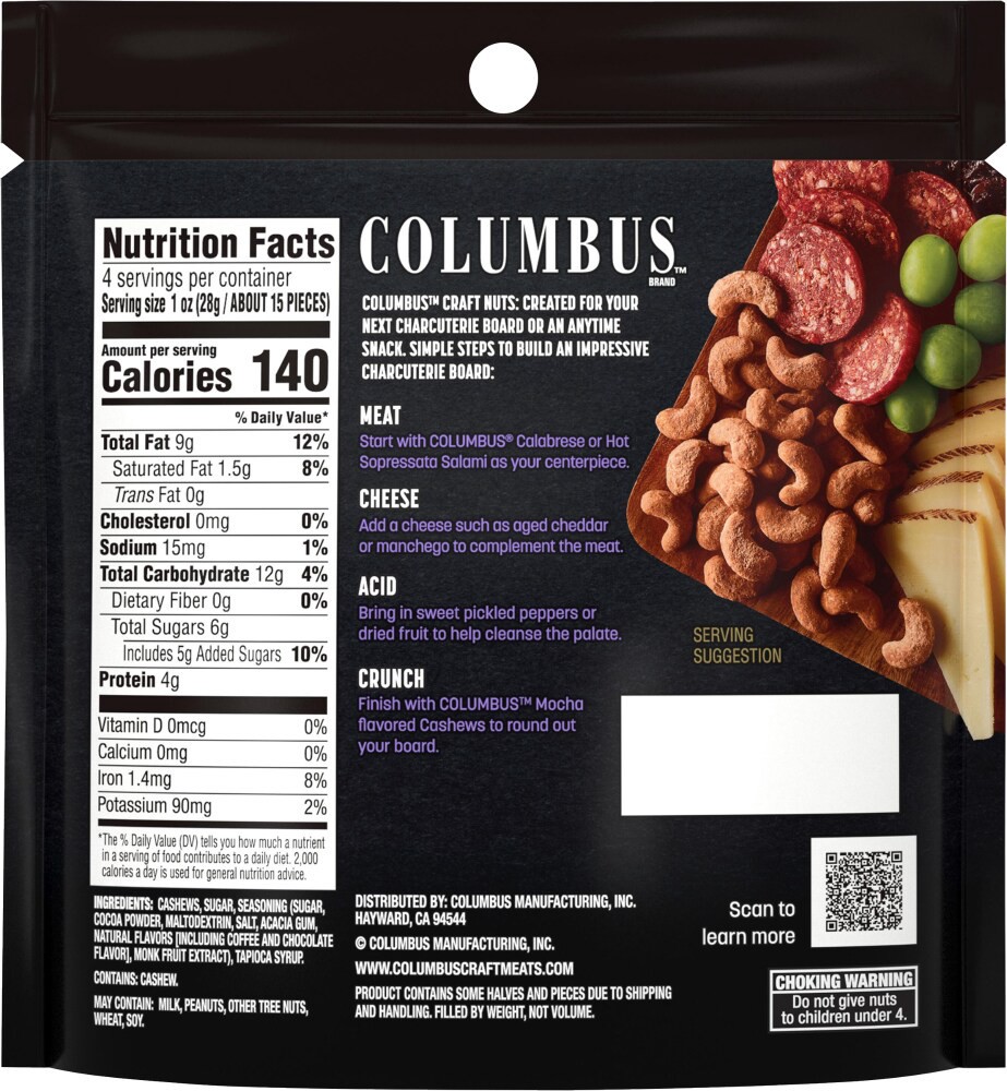 - Features COLUMBUS Craft Nuts; Mocha Flavored Cashews