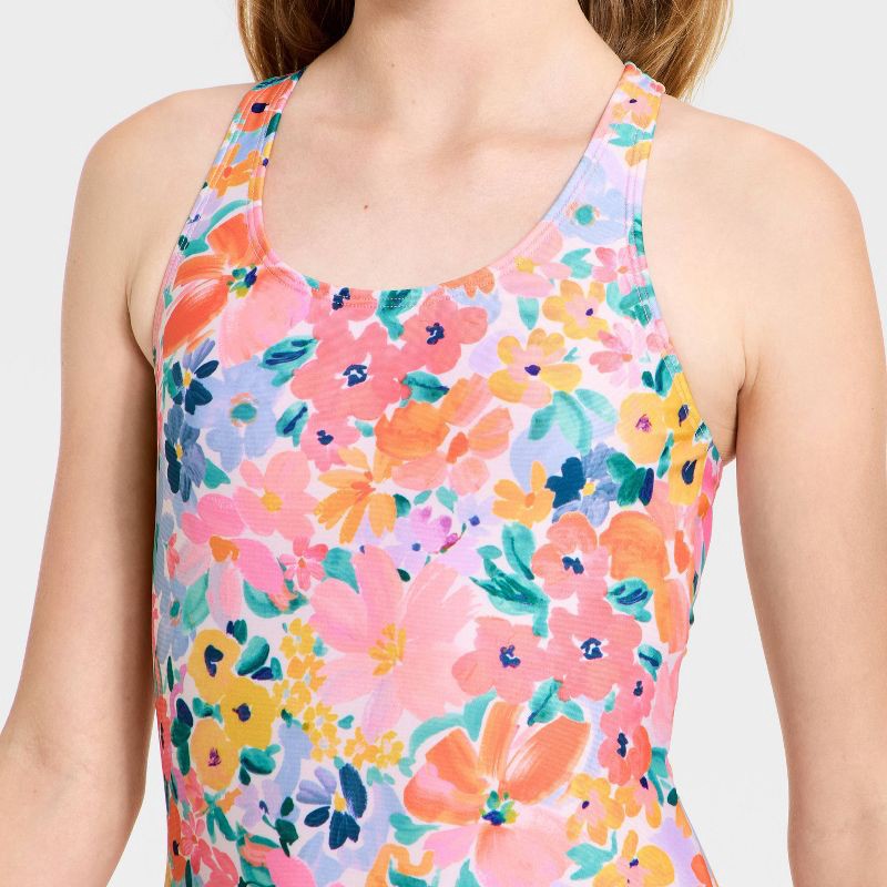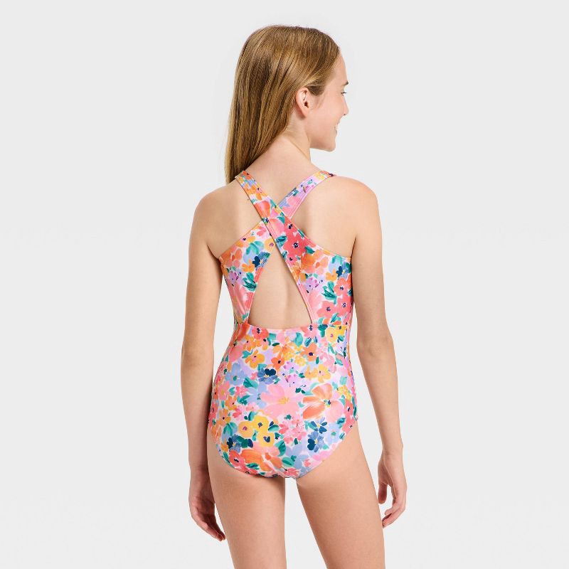 Bring a cute upgrade to your kid's swim wardrobe with this Sunny Fields Printed One-Piece Swimsuit from Cat & Jack™. Made from recycled polyester-spandex blend four-way stretch fabric with recycled po…
