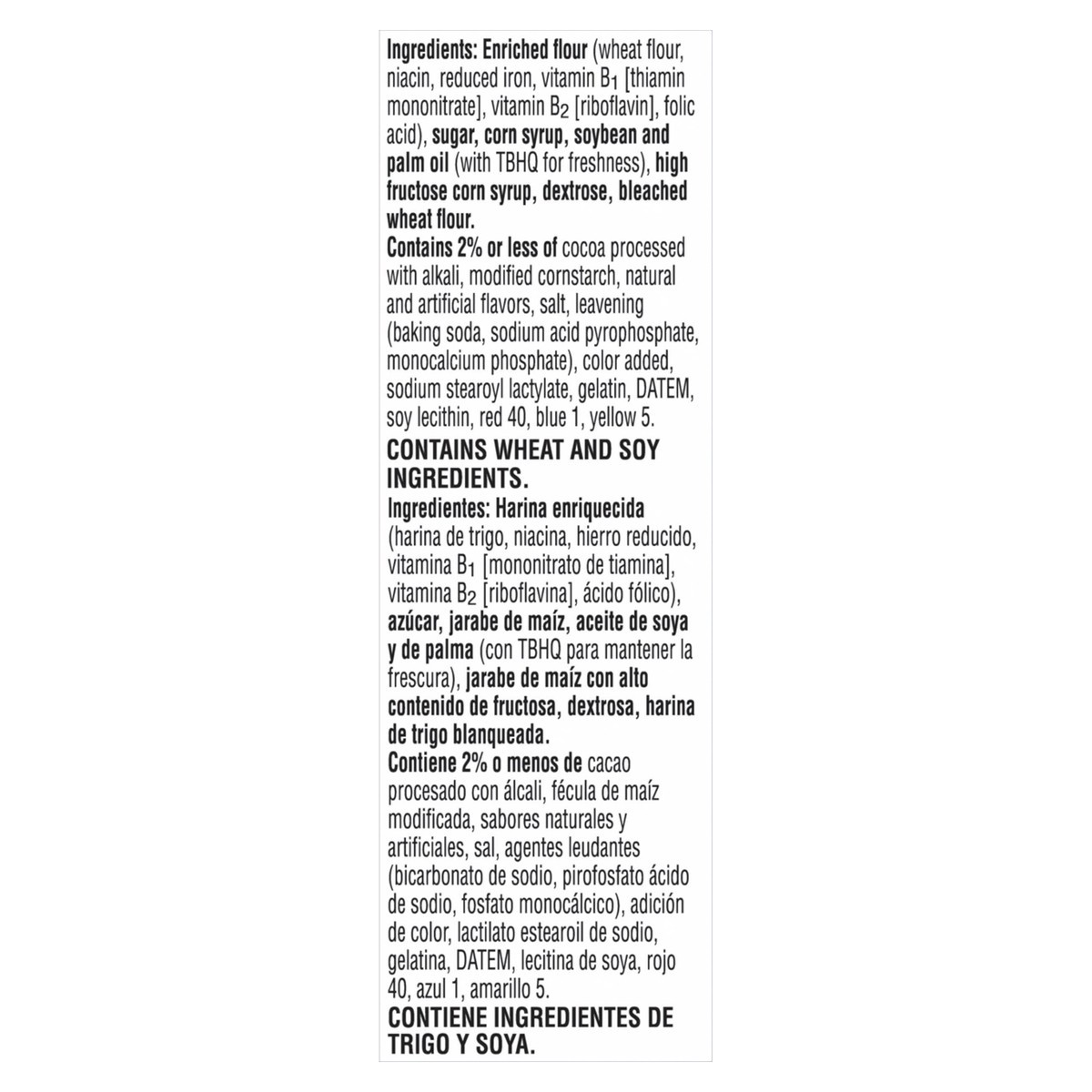 Enriched Flour (Wheat Flour, Niacin, Reduced Iron, Vitamin B1 [Thiamin Mononitrate], Vitamin B2 [Riboflavin], Folic Acid), Sugar, Corn Syrup, Soybean and Palm Oil (with TBHQ for Freshness), High Fruct…