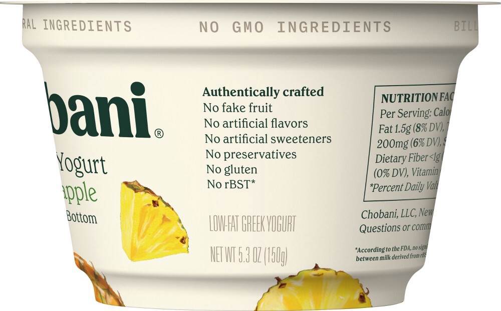 We have been on a mission since day one: to provide better food for more people.No artificial flavors. Low-fat. No gluten. 2% Milk fat. No GM ingredients. Greek yogurt pineapple on the bottom. Authent…