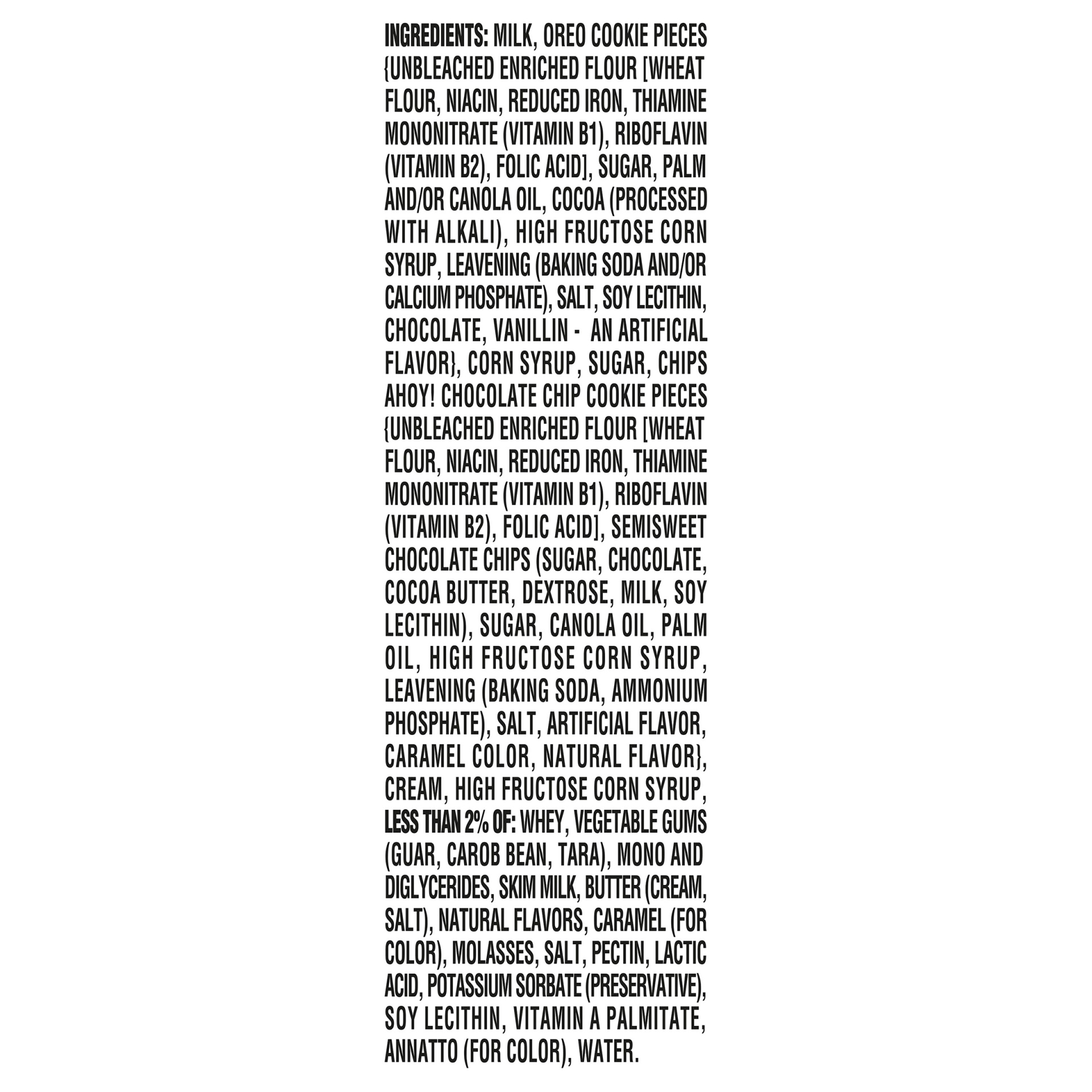 Milk, Oreo Cookie Pieces {Unbleached Enriched Flour [Wheat Flour, Niacin, Reduced Iron, Thiamine Mononitrate (Vitamin B1), Riboflavin (Vitamin B2), Folic Acid], Sugar, Palm and/or Canola Oil, Cocoa (P…