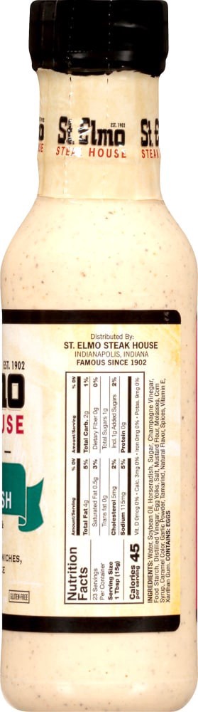 Gluten-free. Est. 1902. World famous. We are world famous for our St. Elmo Shrimp Cocktail Sauce but many of our regulars believe our Creamy Horseradish is the best sauce in the house. Famous since 19…