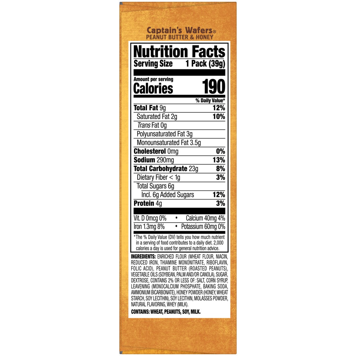 - 4 PACKS: Captain’s Wafers Peanut Butter and Honey, with real peanut butter and honey filling, 6 per pack