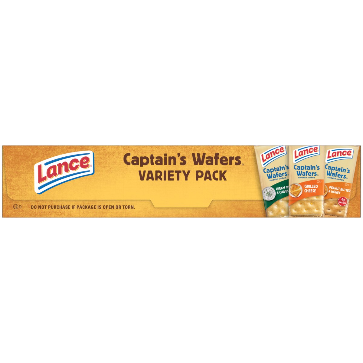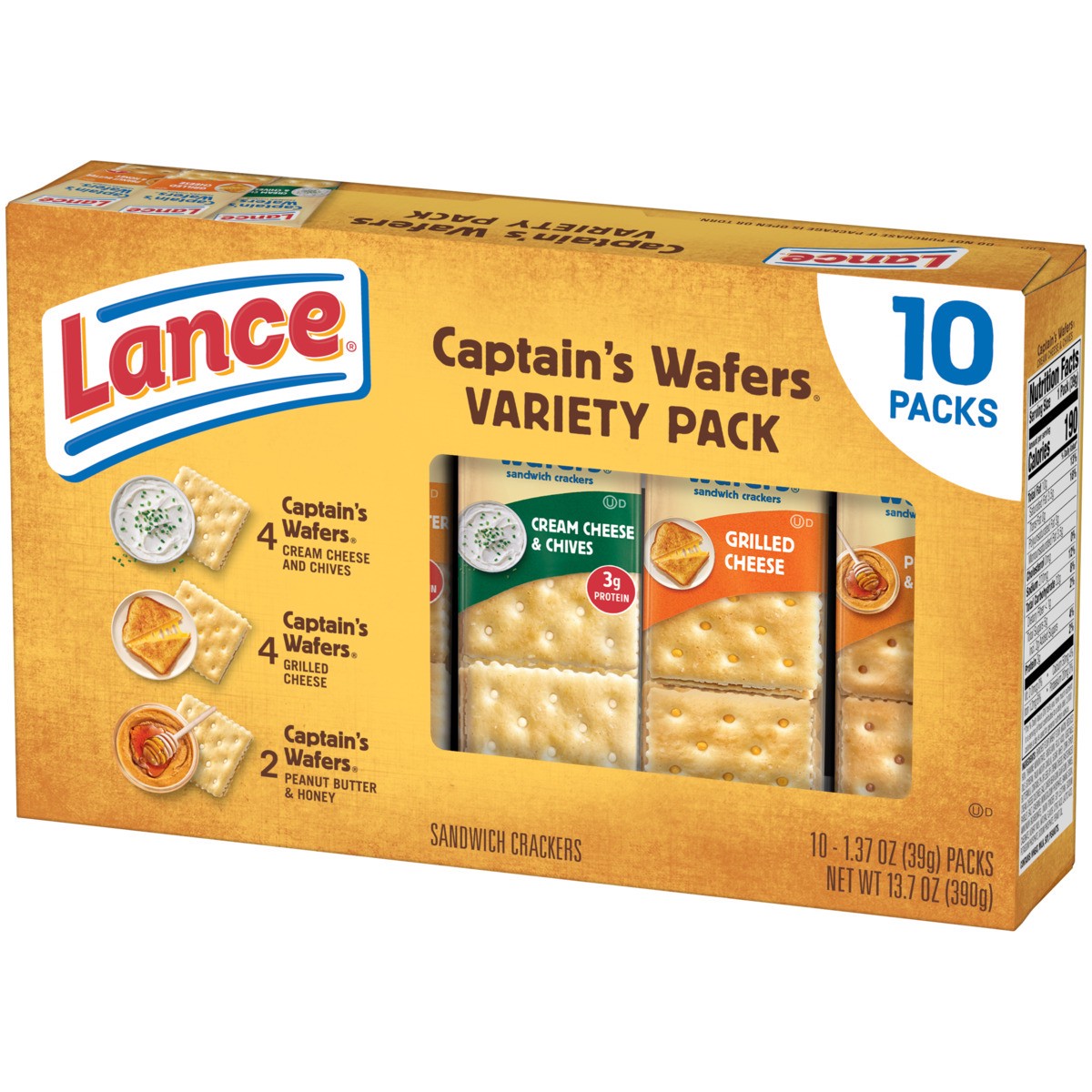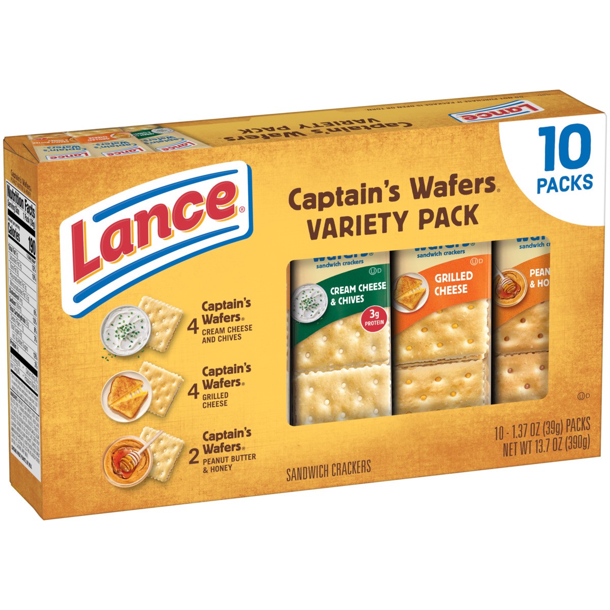 Lance Captain’s Wafers snack lovers won't be able to get enough of this sandwich cracker variety pack! Three of your favorite flavors with delicious fillings between two crispy classic Captain’s Wafer…