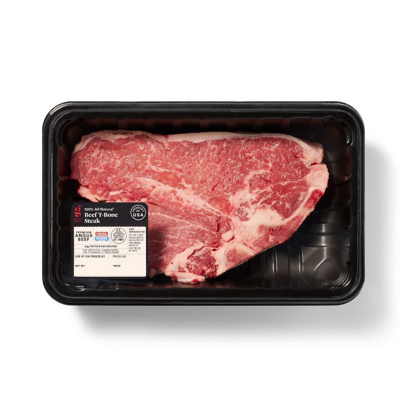 Entertain guests with unmatched dinner parties with this T-Bone Steak from Good & Gather™. Containing sections of the tenderloin and short loin, this premium Angus beef offers a succulent, tender bite…