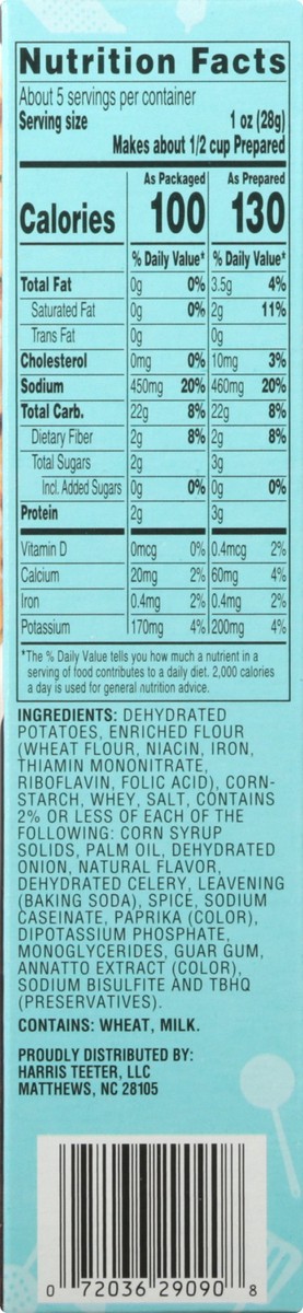 In a rich, creamy sauce mix. Per 1 oz: 100 calories; 0 g sat fat (0% DV); 450 mg sodium (20% DV); 2 g total sugars. Made with 100% real potatoes. YourPlusGuarantee: 1-800-432-6111 or harristeeter.com.…