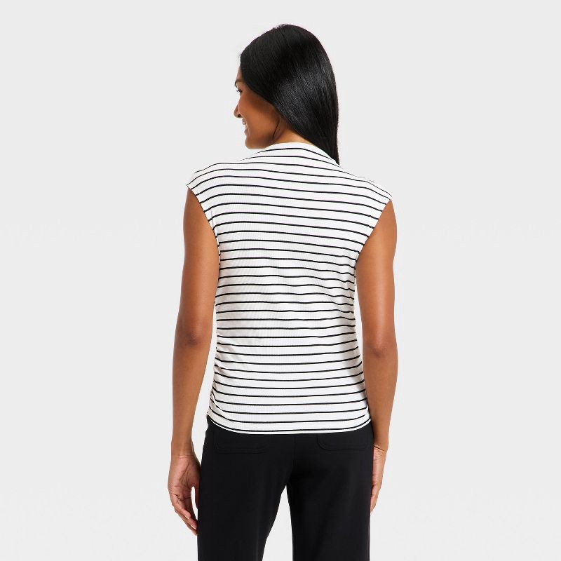 Women's Slim Fit Modern Ribbed Mock Neck Tank Top - A New Day™ White XS
