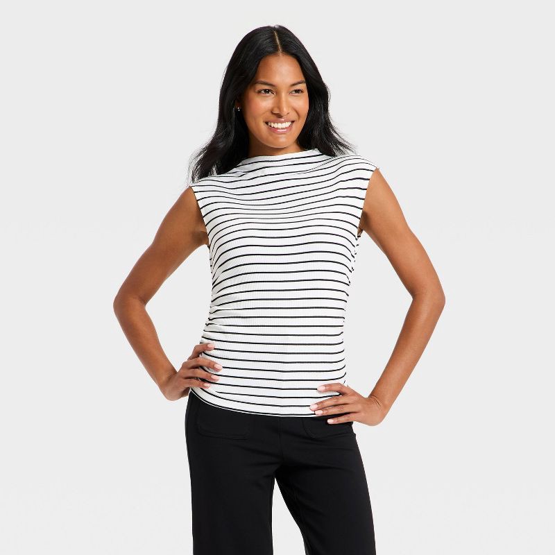 Add a touch of style to your going-out wardrobe with this Modern Ribbed Mock Neck Tank Top from A New Day™. Made from a fabric blend of cotton, rayon and spandex, this tank top features a substantial …