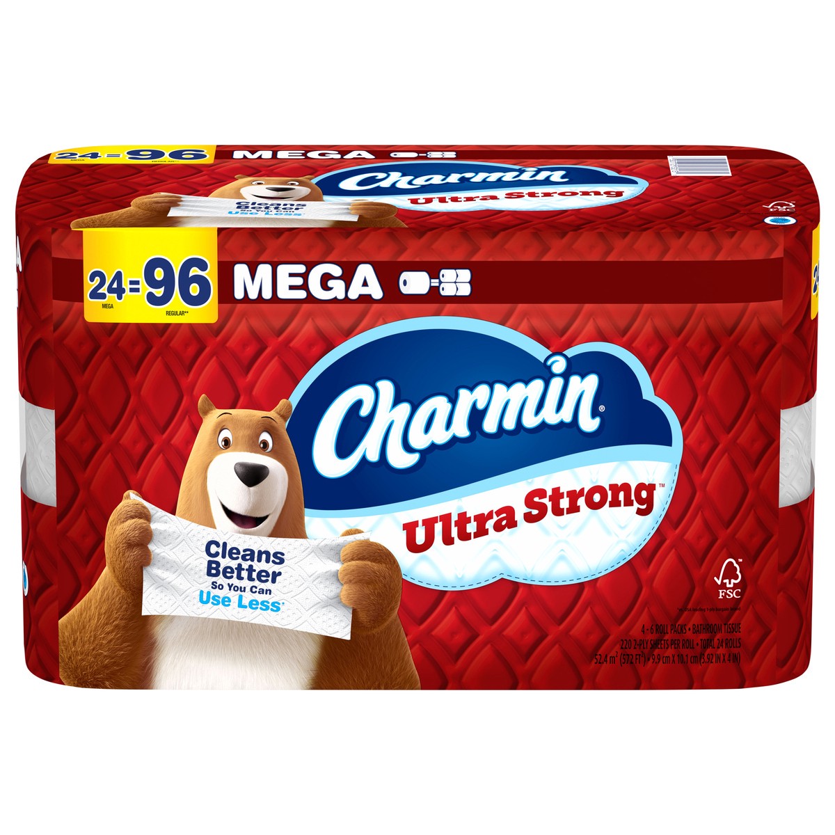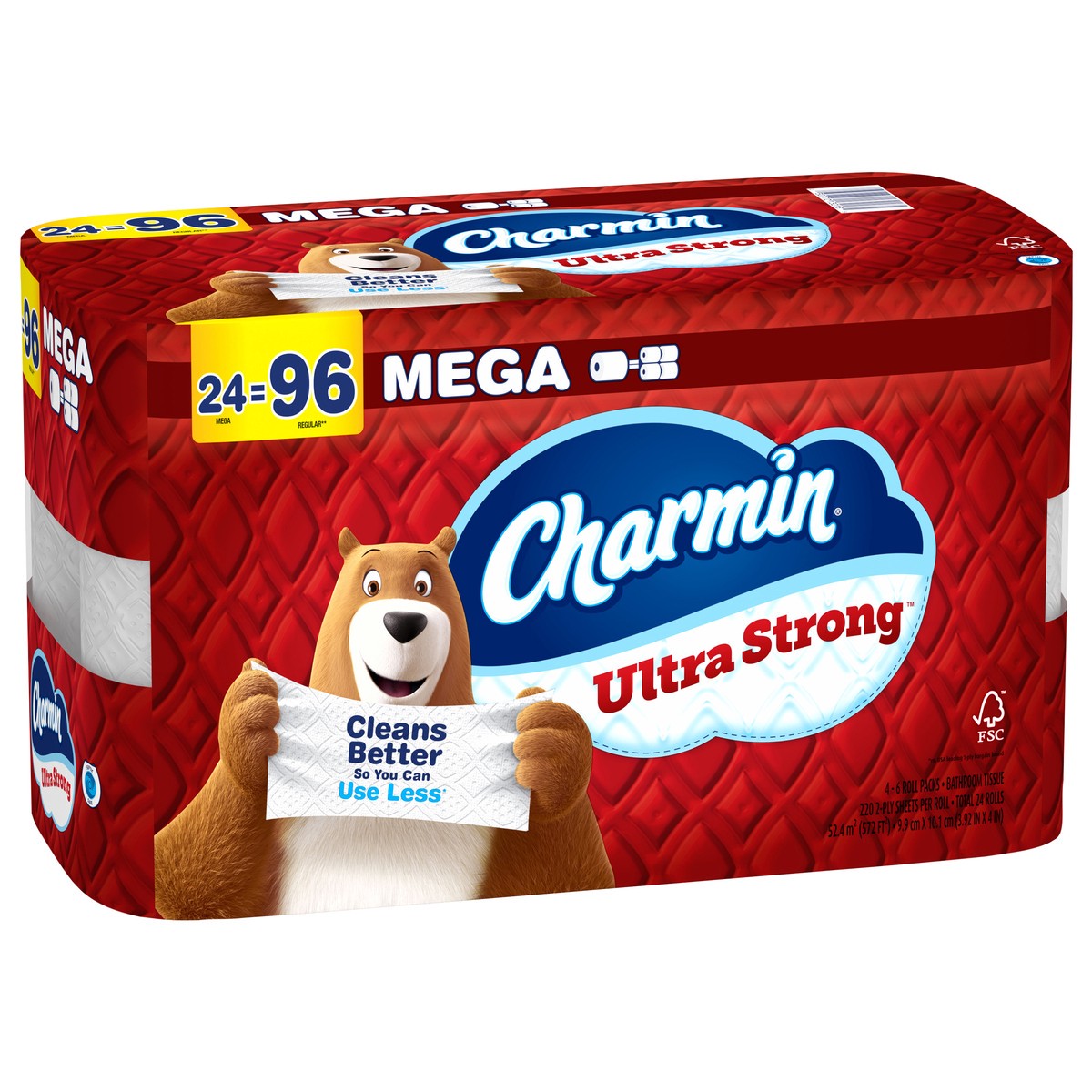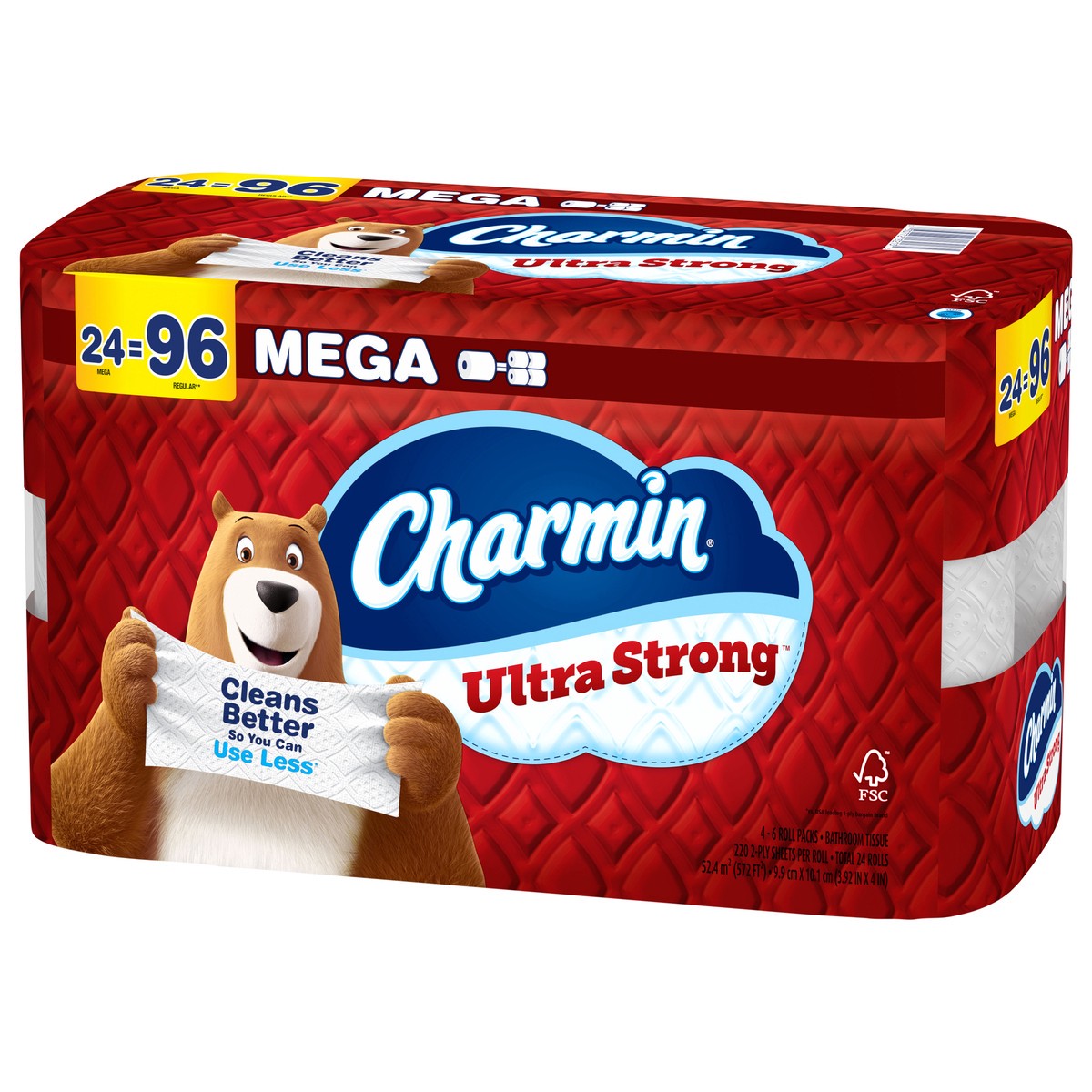 Get sparkly clean with Charmin Ultra Strong. It's 4X stronger when wet* and has a diamond weave texture. It's woven like a washcloth and holds up when you wipe. It even cleans better so you can use le…
