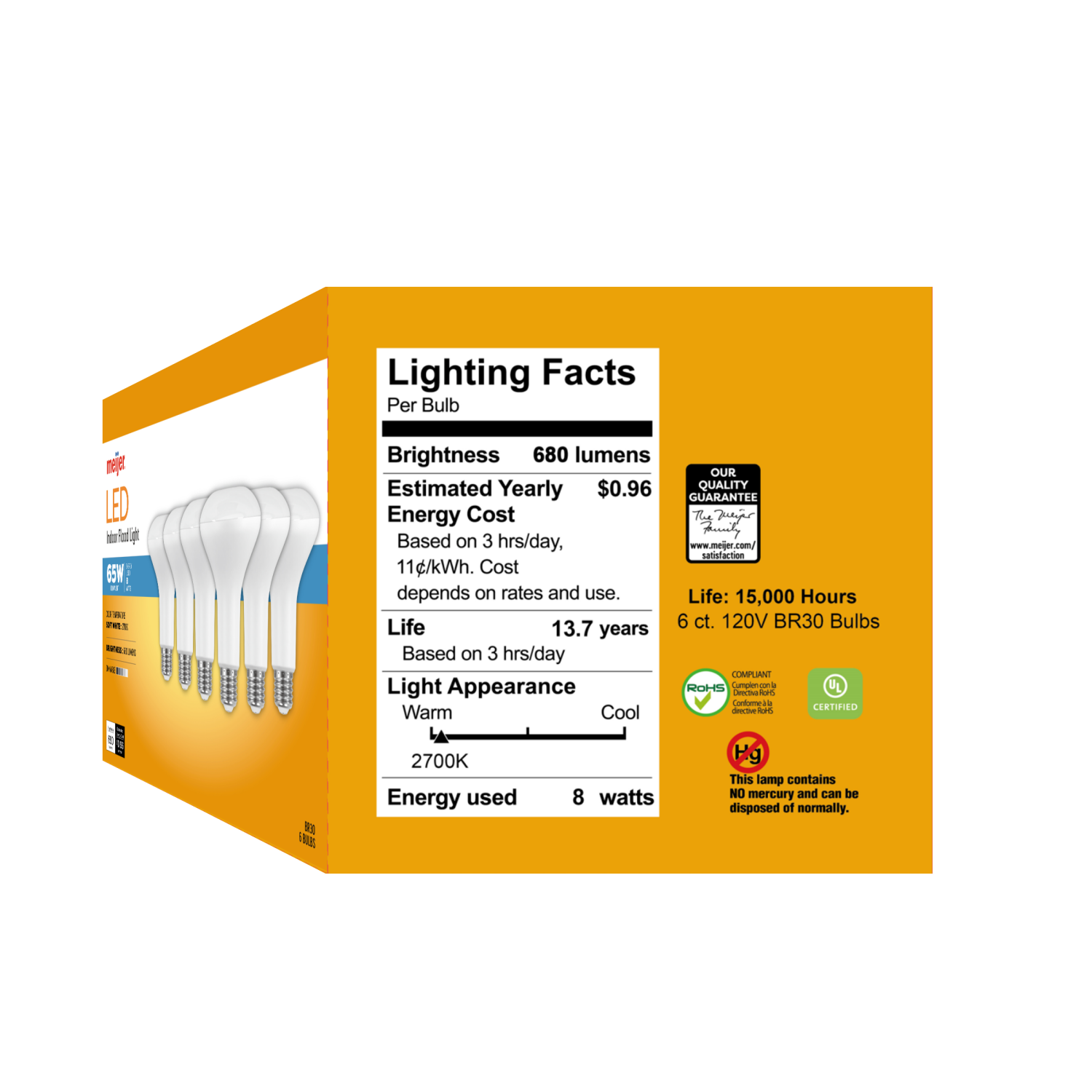 Meijer Led 8w Br30 Bulb, Indoor Flood Light 65w Dimmable, 6 Ct