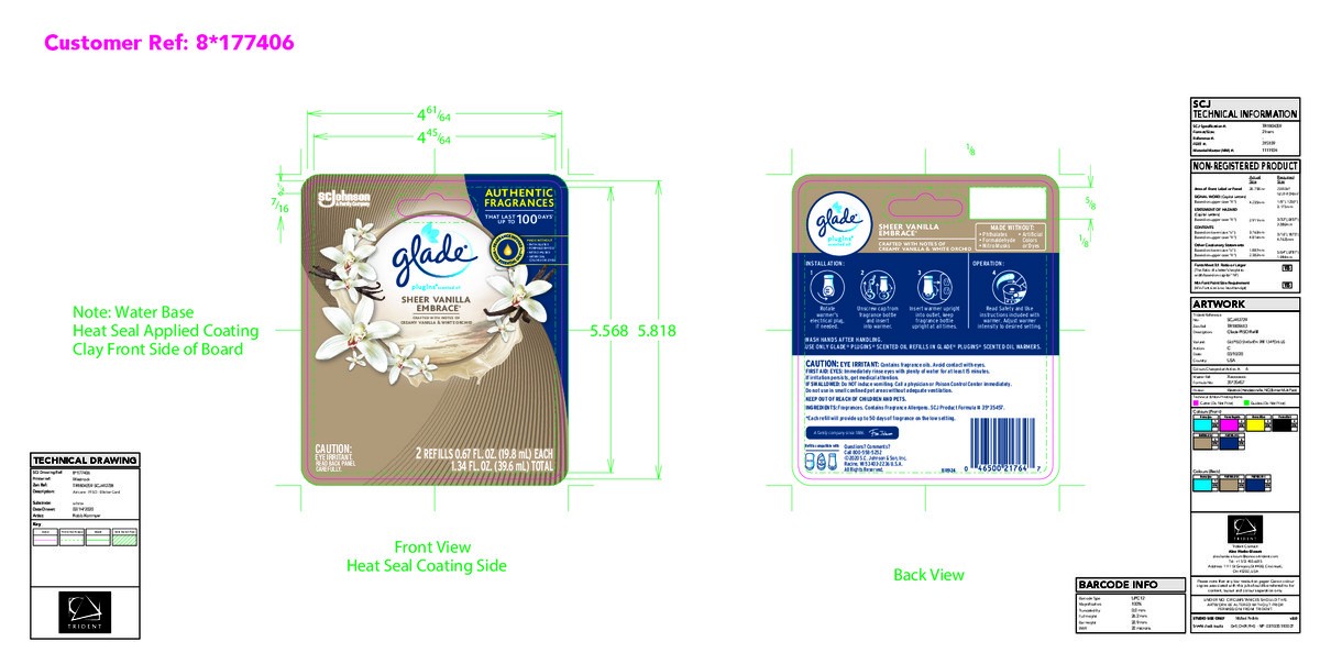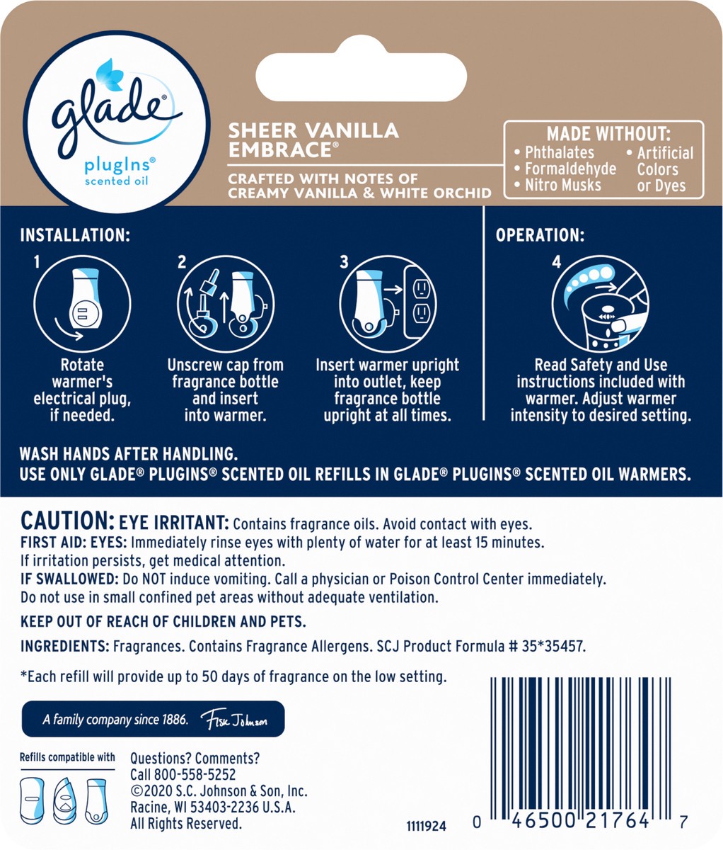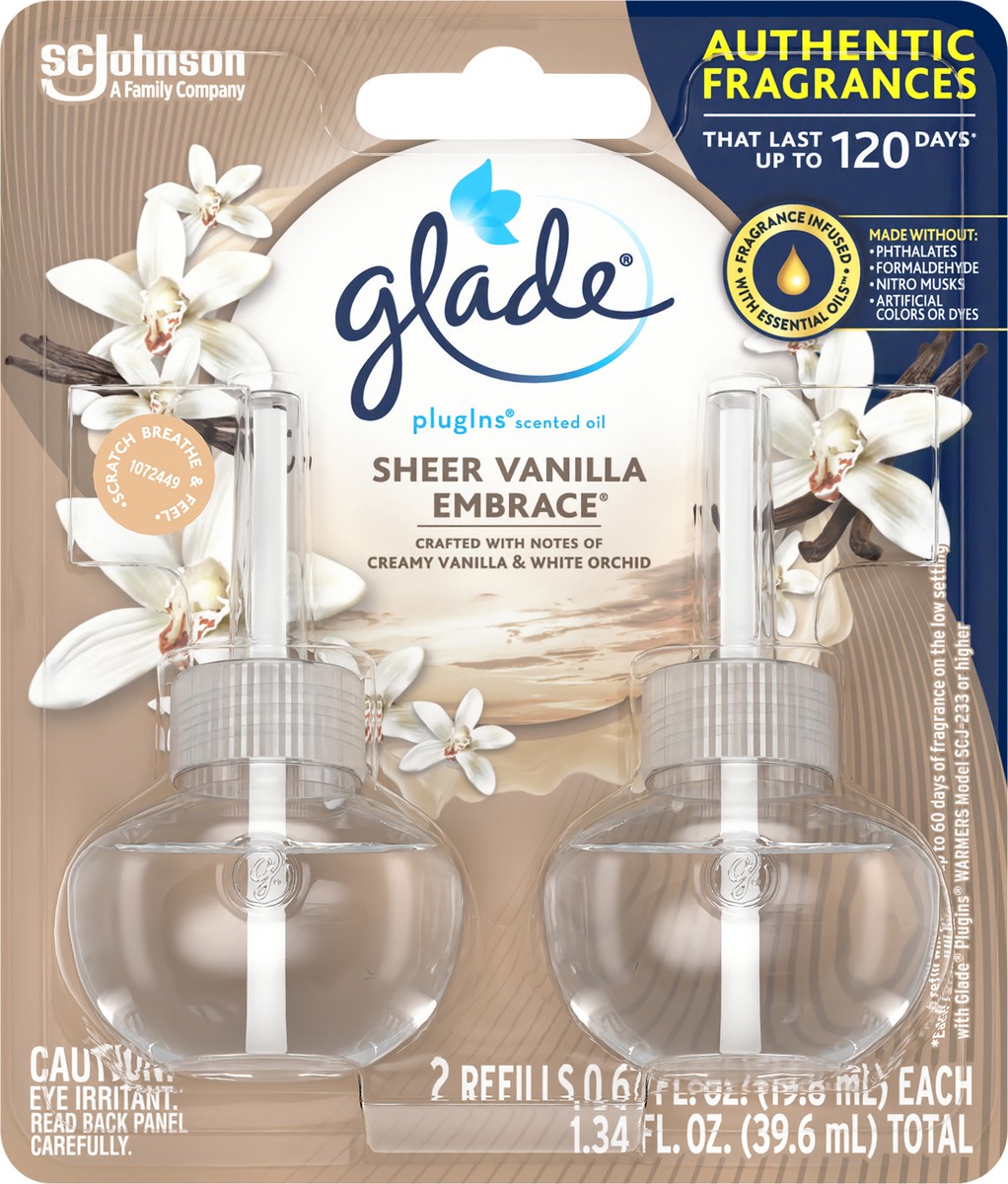 Glade Plugins Sheer Vanilla Embrace Scented Oil Air Freshener Refill 2 Count - 1.34 Oz