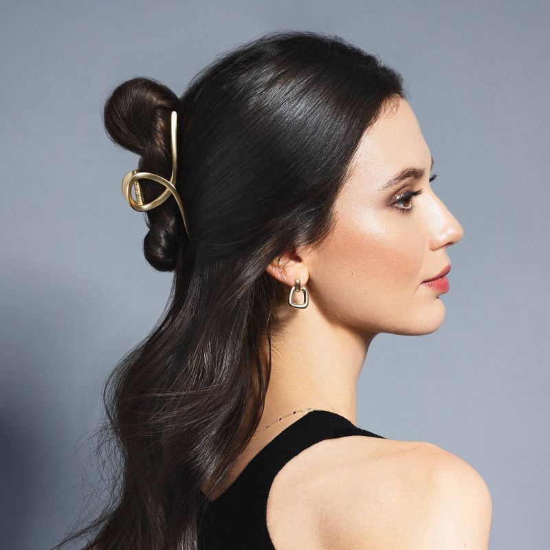 The French Twist Clip from The Hair Edit makes styling a 'French twist' hairstyle easy. Simply twist your hair up and clip in this large gold loop claw clip for a minimal and sophisticated look. Great…