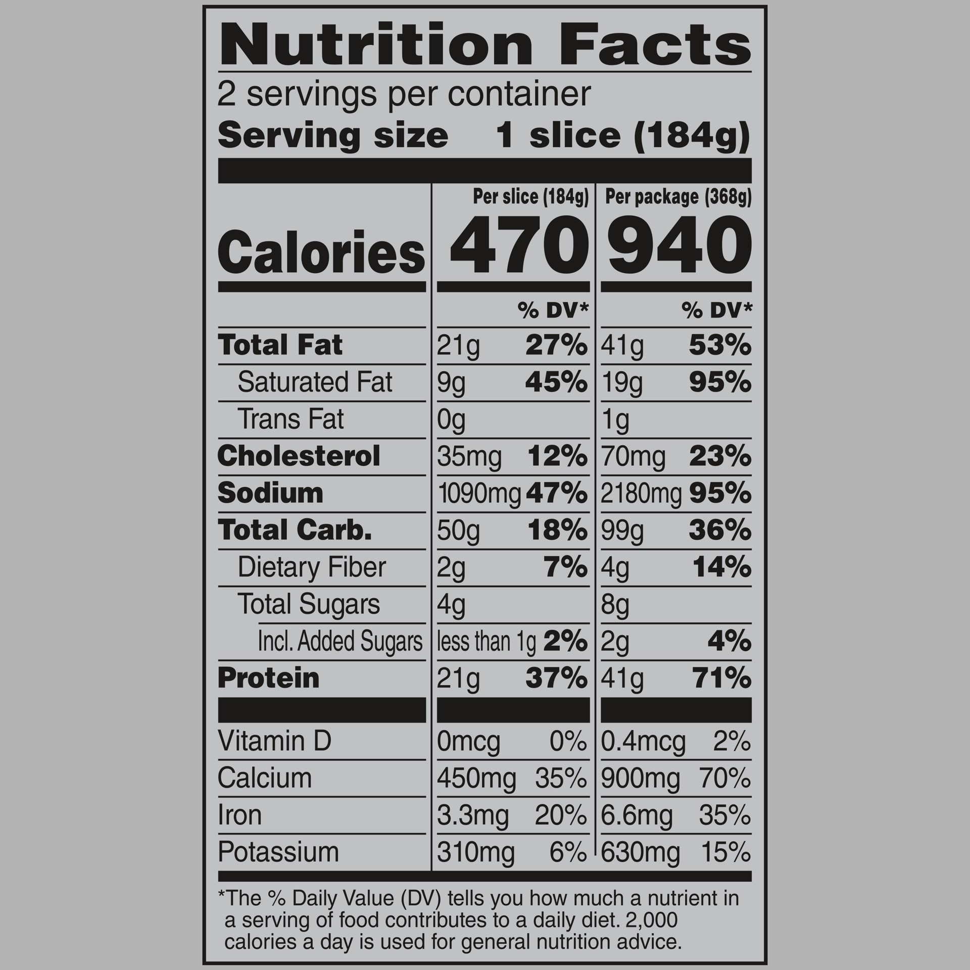 Two layers of crust stuffed with marinara sauce, mozzarella, parmesan, and Romano cheeses. Per 1 Slice: 440 calories; 7 g sat fat (35% DV); 960 mg sodium (42% DV); 5 g total sugars. 43 g protein per p…