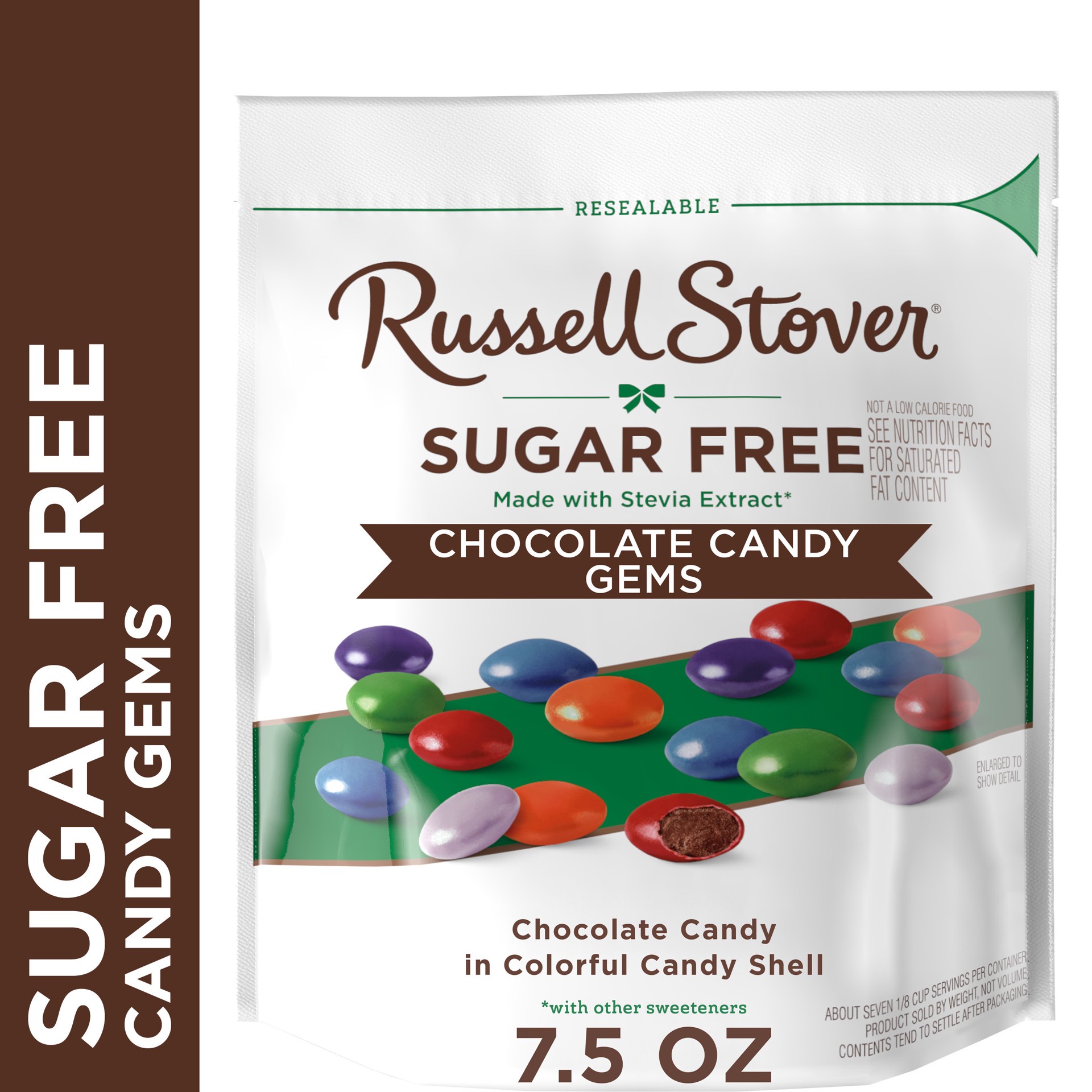 - RUSSELL STOVER Sugar Free Chocolate Candy Gems are made with Stevia extract, a plant-based sweetener that delivers all the sweet taste you crave with no added sugar - zero sugar, great taste!