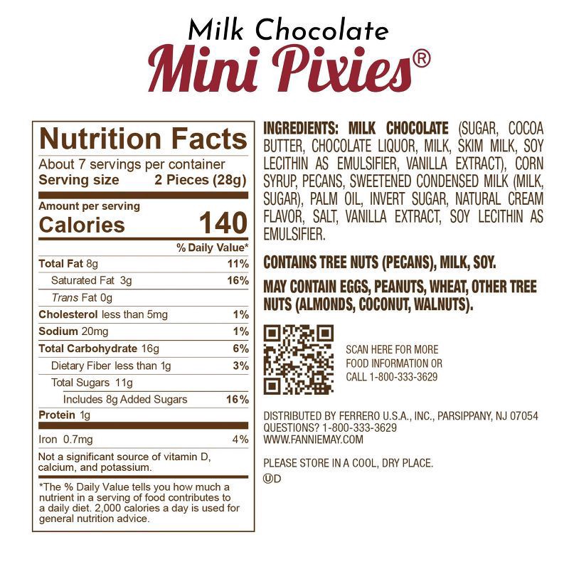 Milk Chocolate (Sugar, Cocoa Butter, Chocolate Liquor, Milk, Skim Milk, Soy Lecithin as Emulsifier, Vanilla Extract), Corn Syrup, Pecans, Sweetened Condensed Milk (Milk, Sugar), Palm Oil, Invert Sugar…