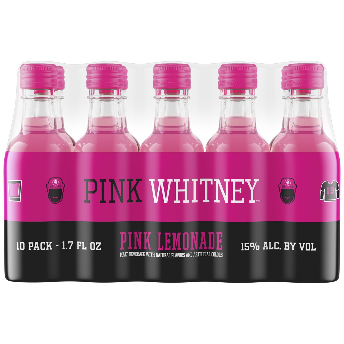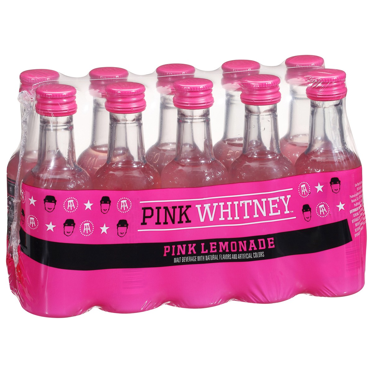 - Pack of ten (10) Pink Whitney Lemonade Flavored Vodka 50ml plastic bottles