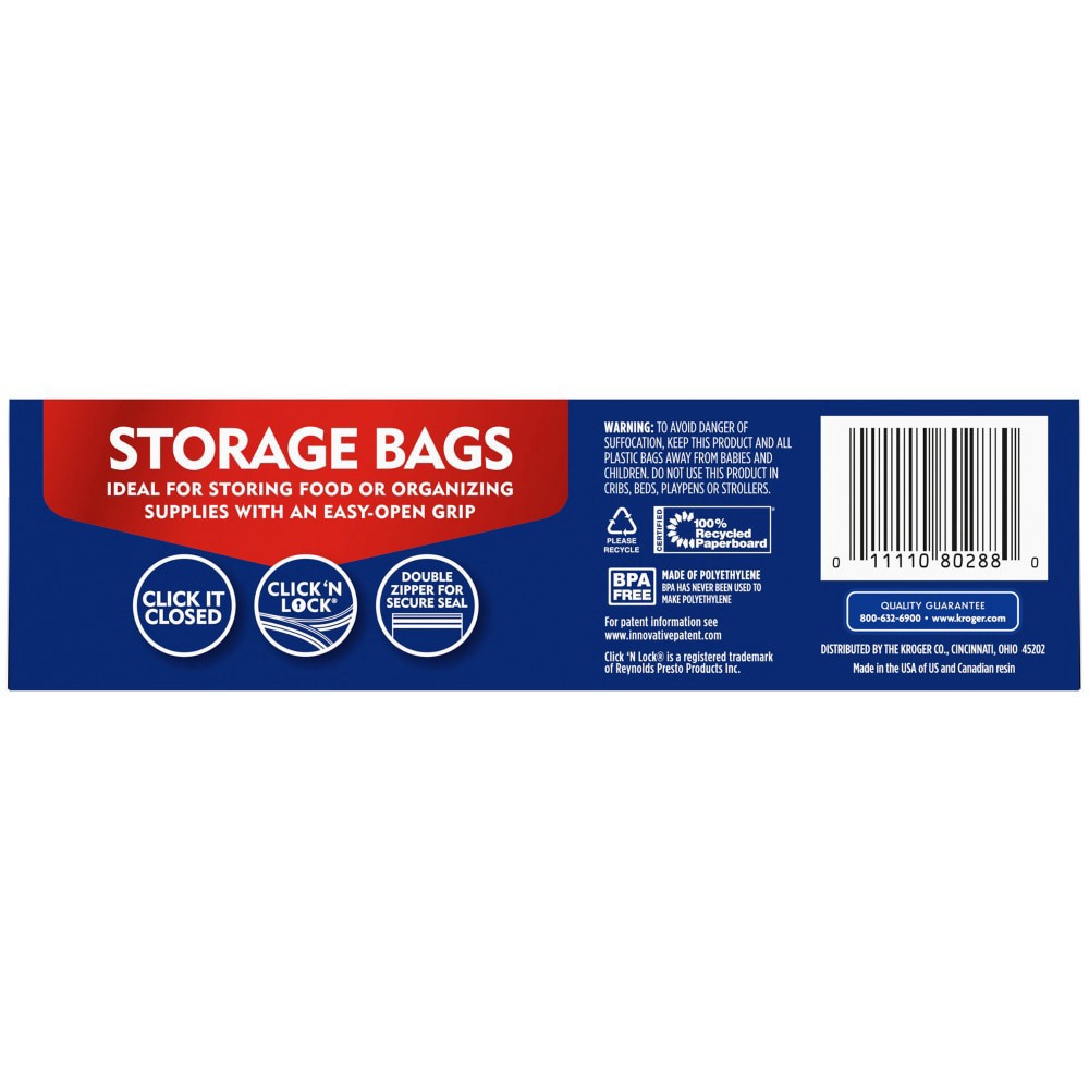 Our storage bags are ideal for storing food oror organizing supplies with an easy-open grip.Double Zipper for Secure SealClick it ClosedClick 'N LockĀ®
