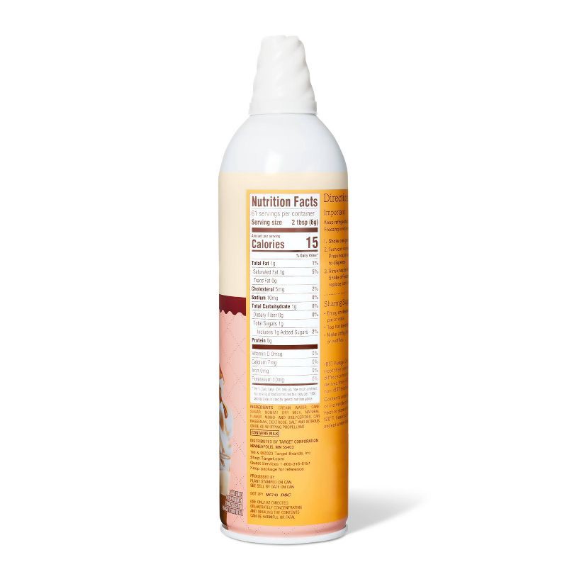 CREAM, WATER, CANE SUGAR, NONFAT DRY MILK, NATURAL FLAVOR, MONO- AND DIGLYCERIDES, CARRAGEENAN, DEXTROSE, SALT AND NITROUS OXIDE AS WHIPPING PROPELLANT.