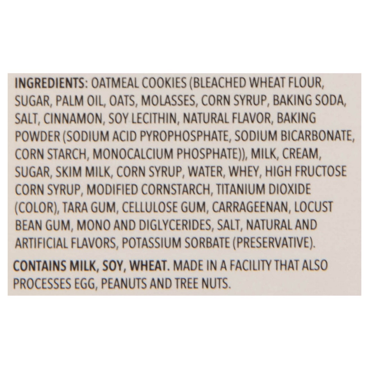 Oatmeal Cookies (Bleached Wheat Flour, Sugar, Palm Oil, Oats, Molasses, Corn Syrup, Baking Soda, Salt, Cinnamon, Soy Lecithin, Natural Flavor, Baking Powder (Sodium Acid Pyrophosphate, Sodium Bicarbon…