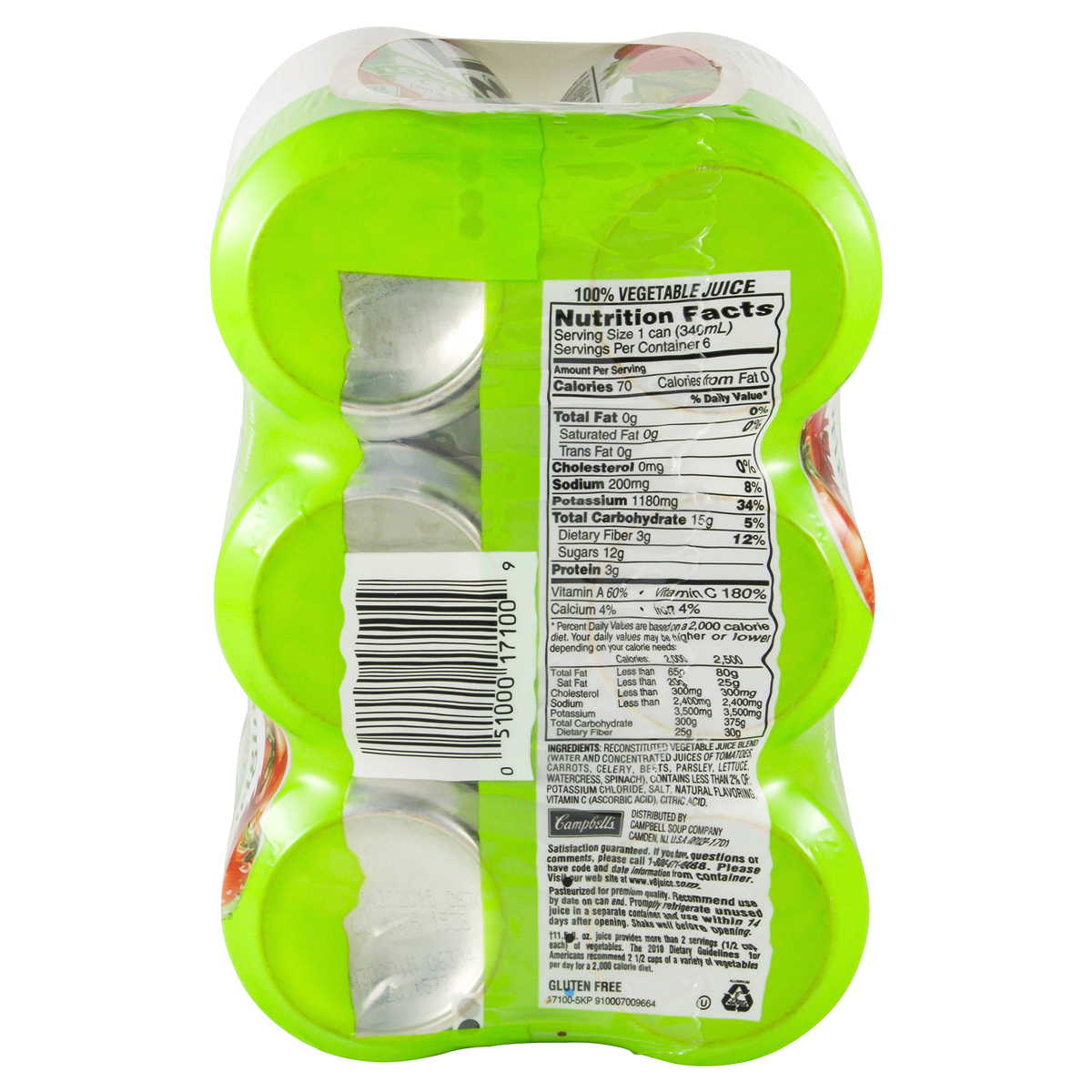 - Each 11.5 fl oz can of this 100% juice contains 2.5 servings of vegetables and is an excellent source of Vitamins A and C
