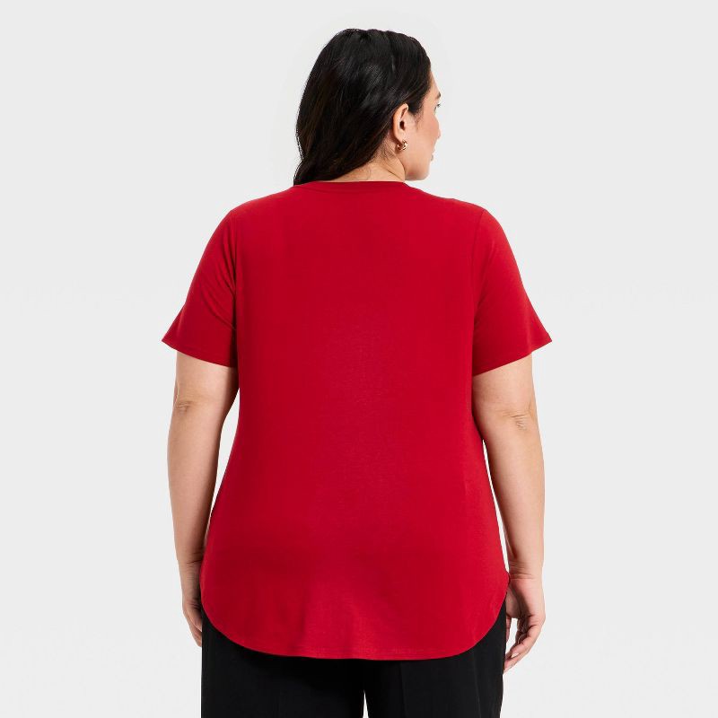 Women's Short Sleeve Drapey T-Shirt - Ava & Viv™ Red 2X