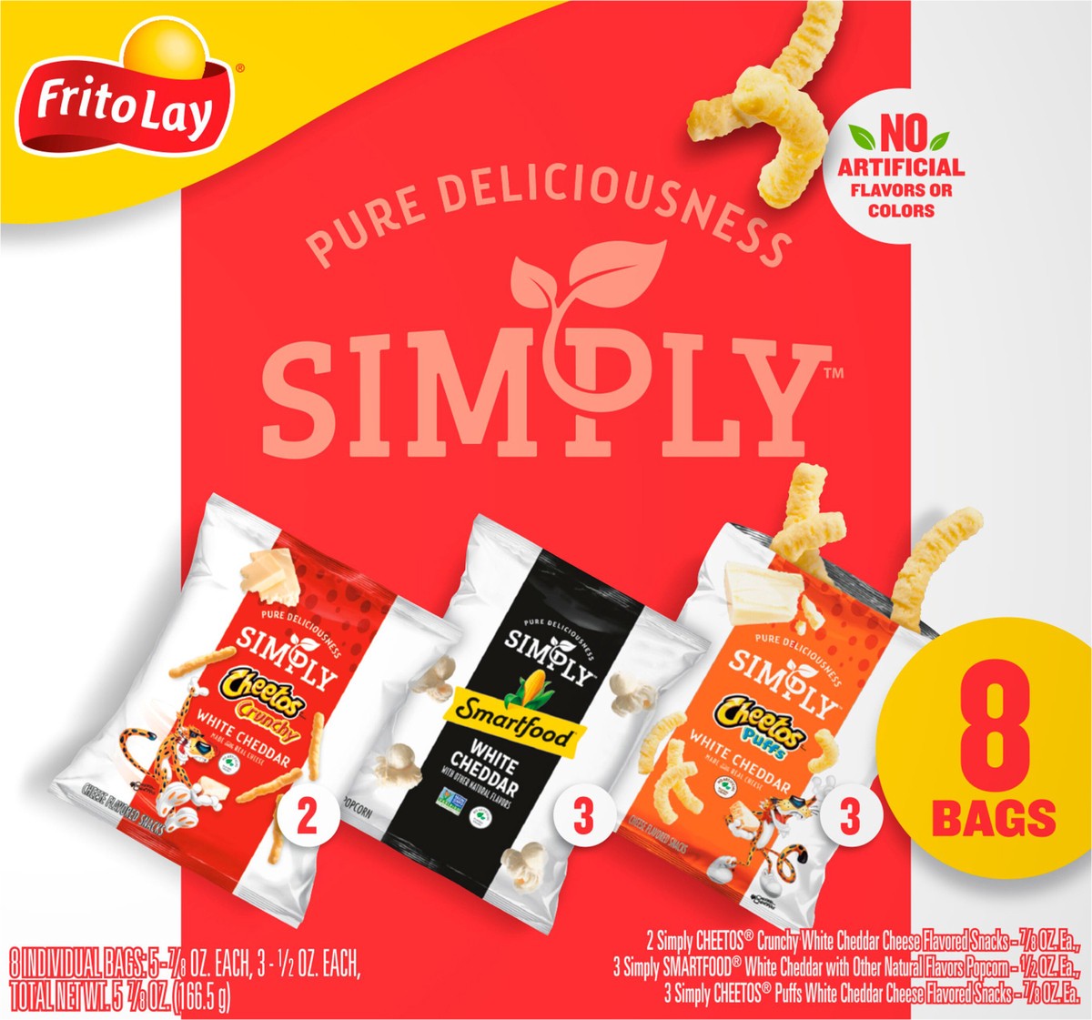 Simply Cheetos Crunchy White Cheddar Cheese Flavored Snacks: Simply Cheetos Crunchy White Cheddar Cheese Flavored Snacks Ingredients: Enriched Corn Meal (Corn Meal, Ferrous Sulfate, Niacin, Thiamin Mo…
