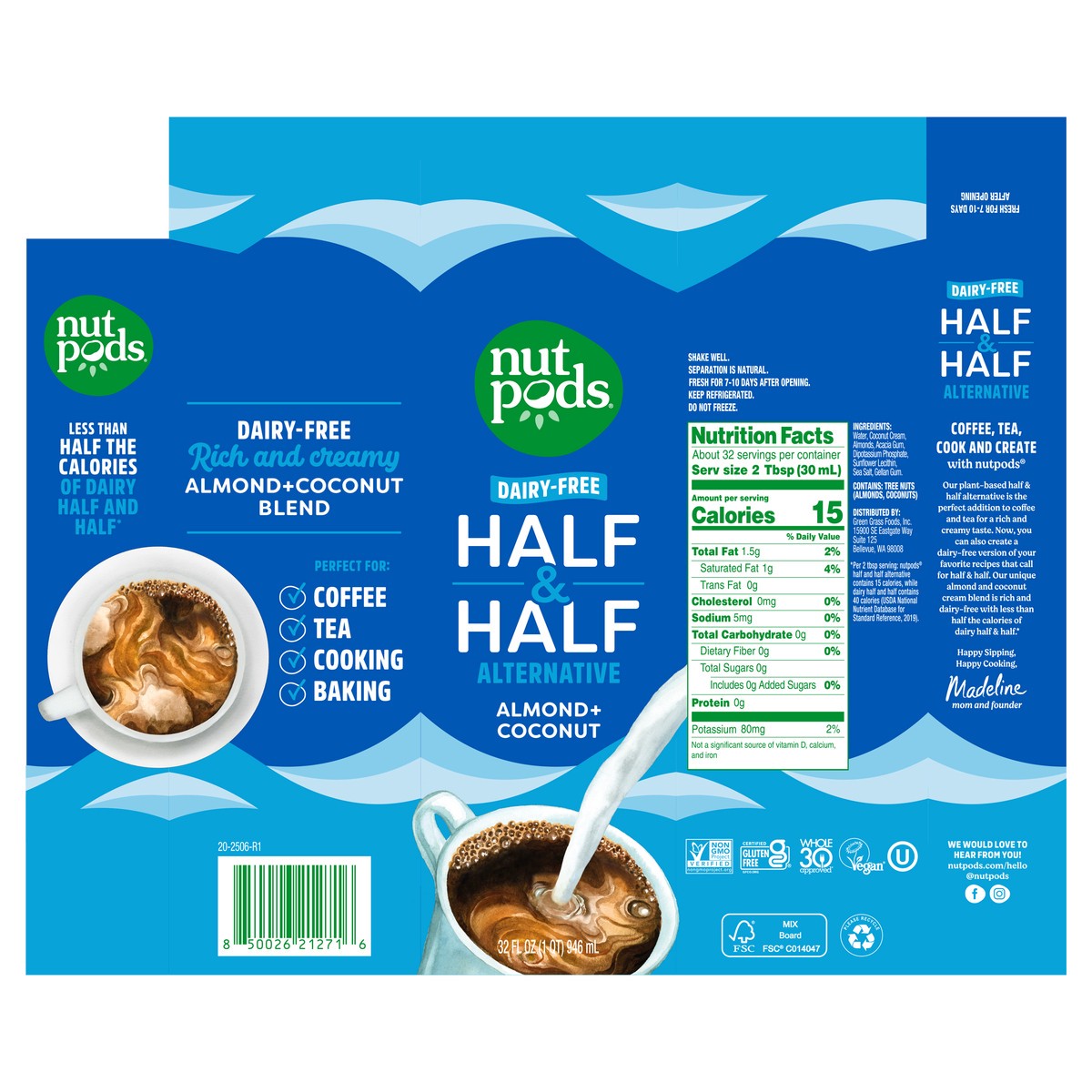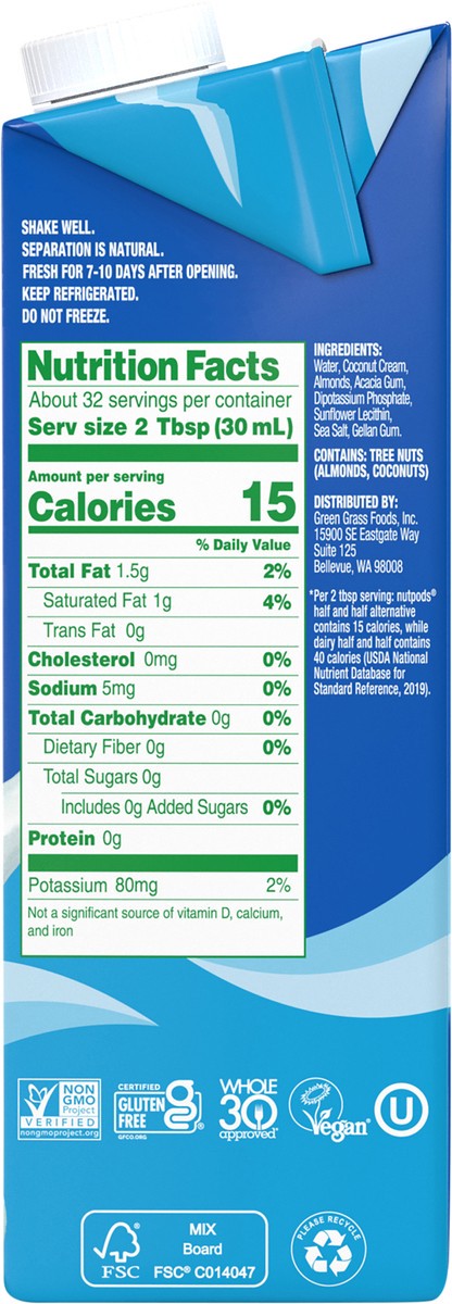 nutpods Non Dairy Half & Half Alternative made with Almonds and Coconuts