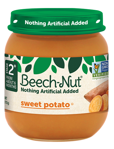 Beech-Nut Baby Food is made with simple, non-GMO ingredients. Our sweet potato baby food puree has no artificial preservatives, colors or flavors and no added sweeteners--just what you'd expect for ba…