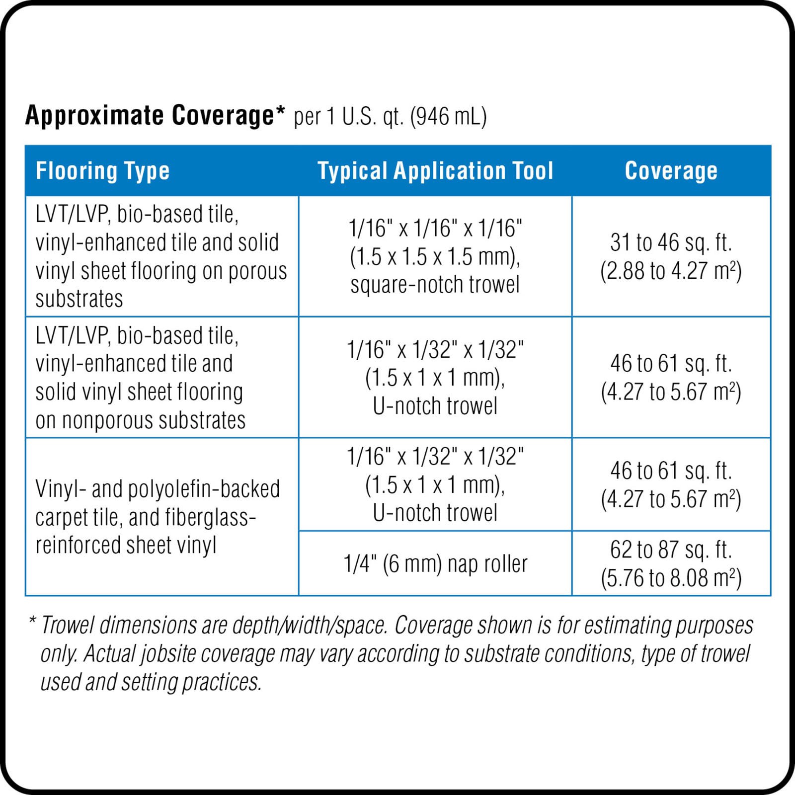 Dries quickly with super aggressive tack properties. Up to 12 hours of working time. Apply using either a trowel or roller, depending on the flooring type. Super aggressive, pressure-sensitive adhesiv…