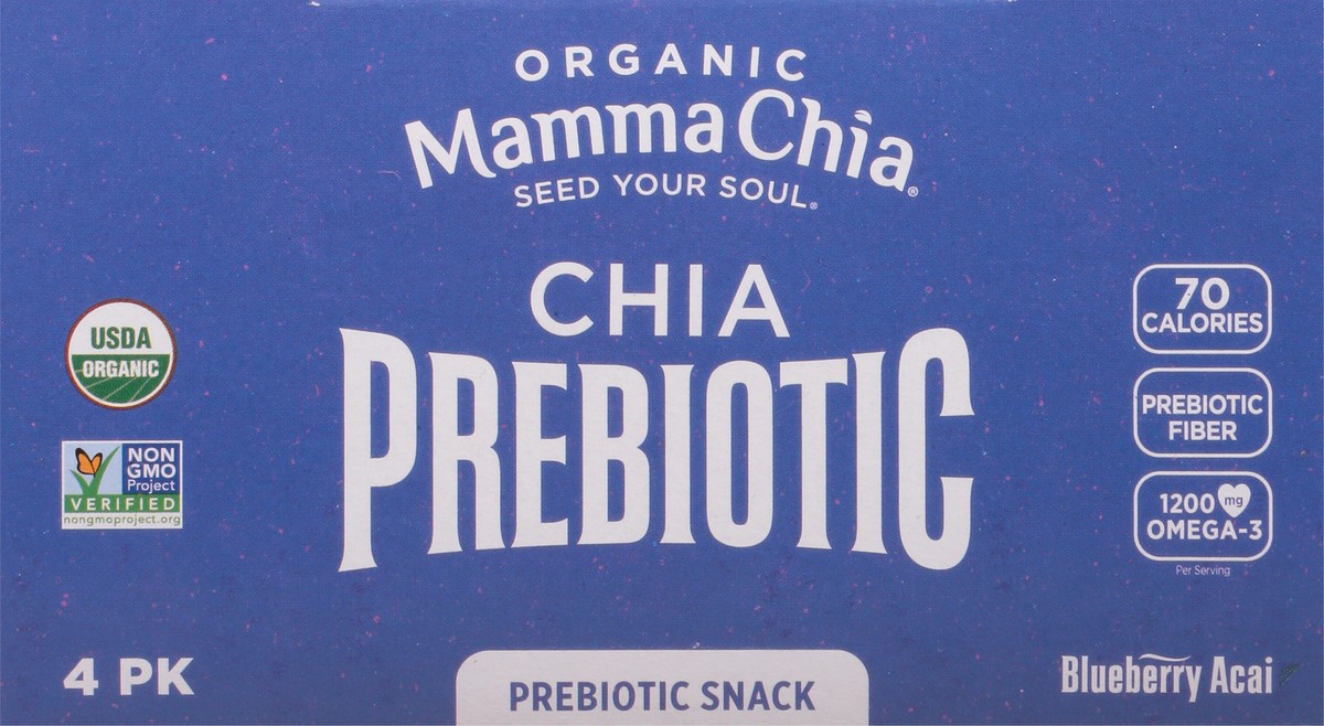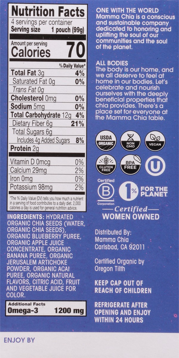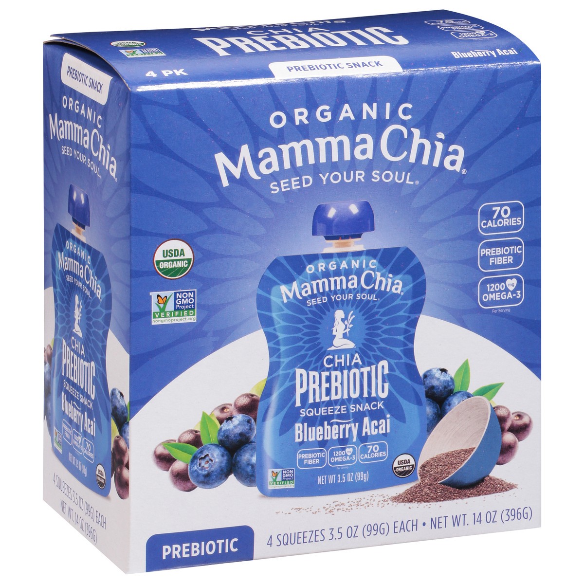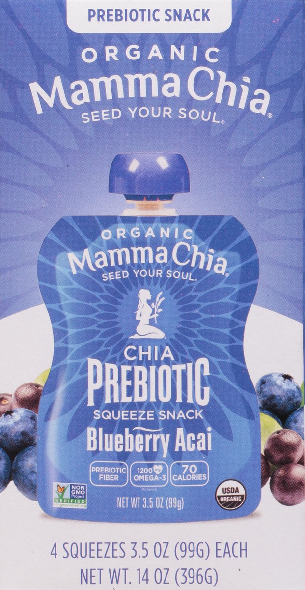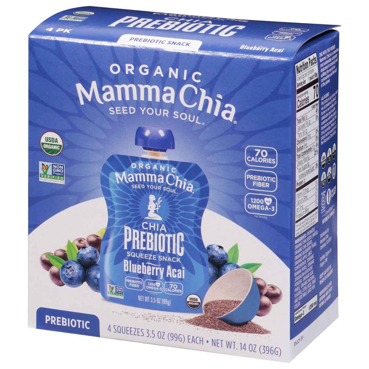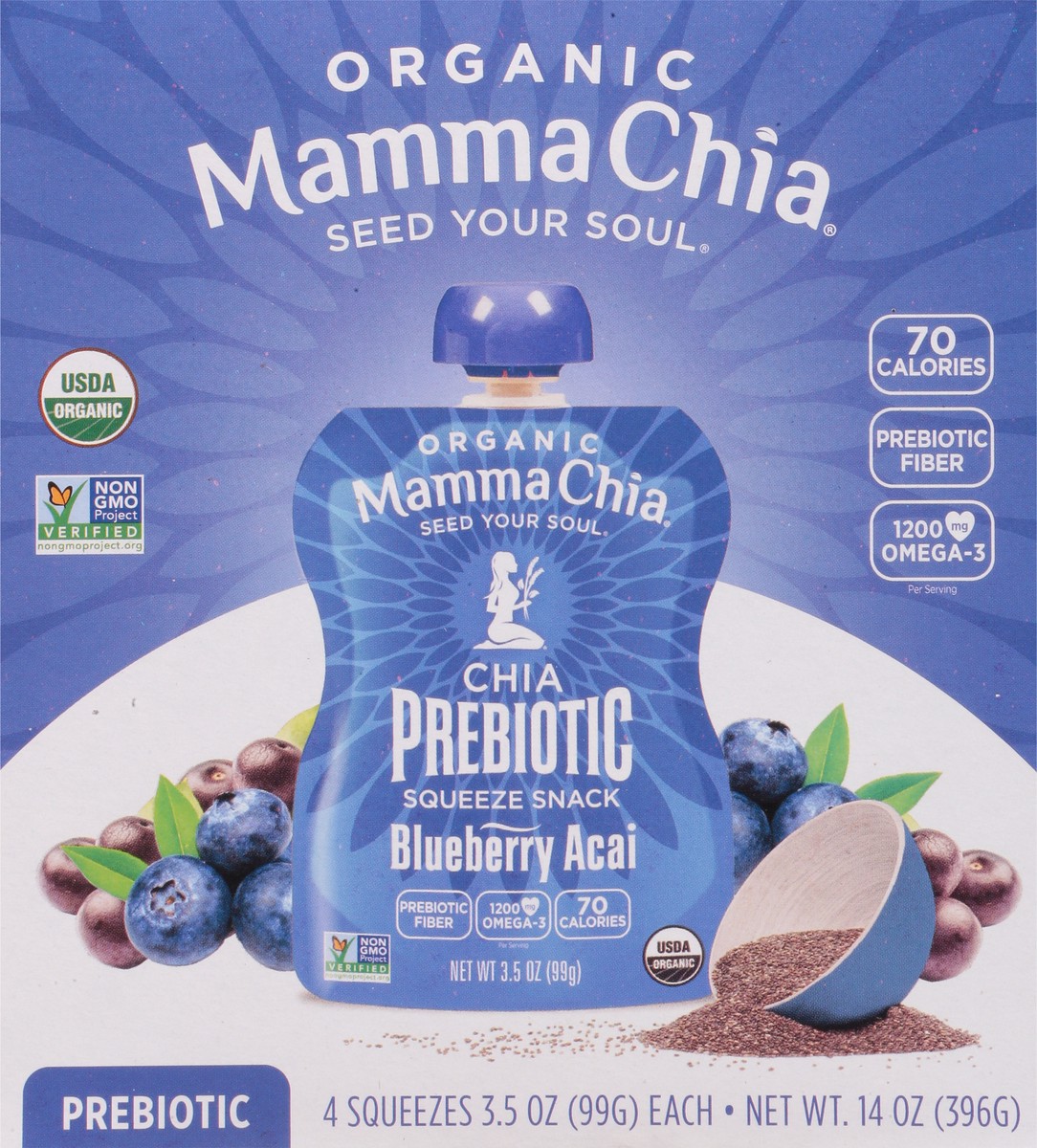 Mamma Chia Organic Blueberry Acai Prebiotic Squeeze Snack - 4 x 14 oz
