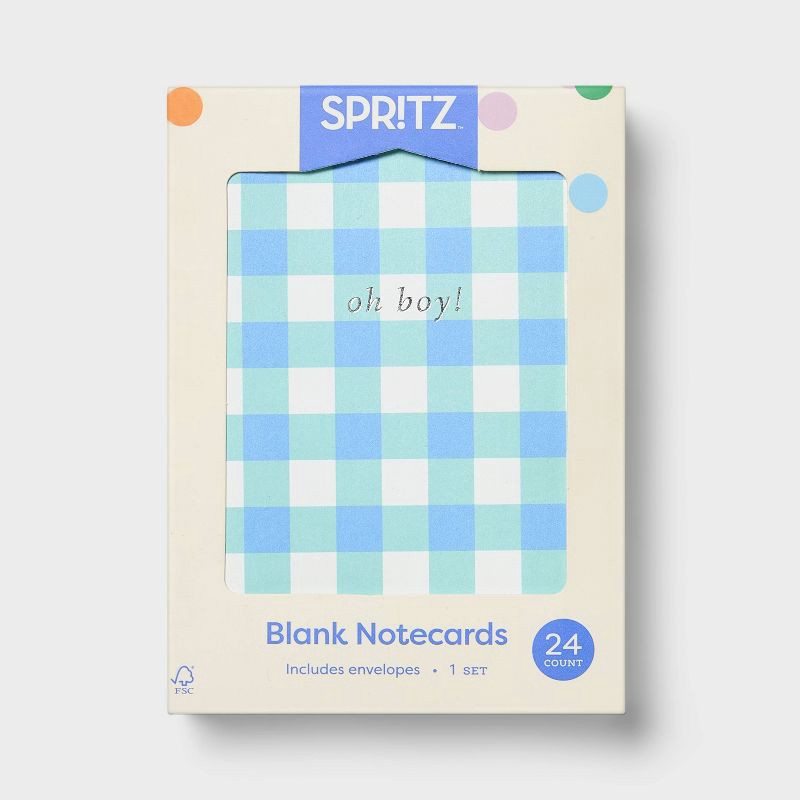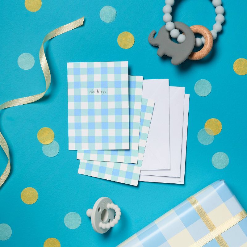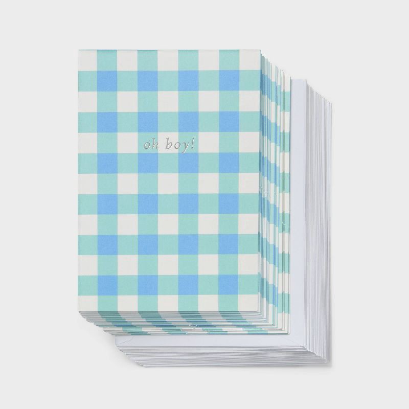 24ct Baby Boy Cards - Spritz™: Gingham Check, Foil Accents, New Baby Stationery, Includes Envelopes, Classic Pattern