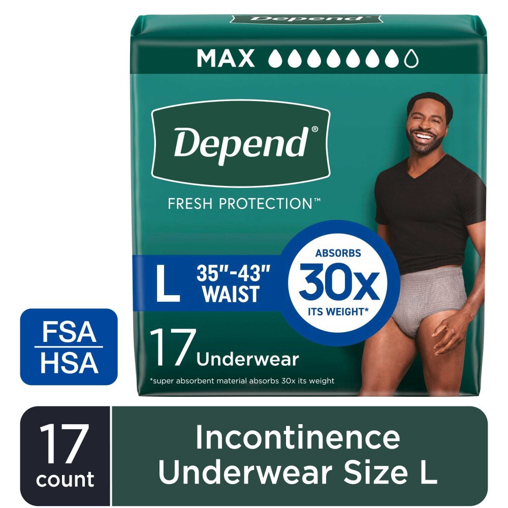 Depend Fresh Protection Adult Incontinence Underwear for Men, Disposable, Maximum, Large, Grey, 17 Count