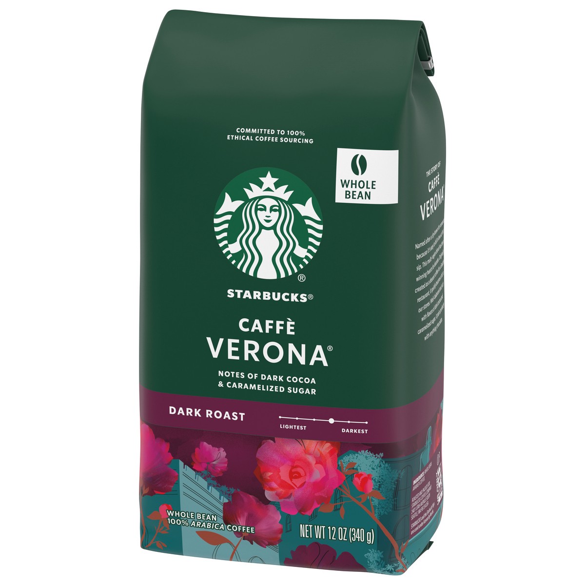 Starbucks Caffe Verona 100% Arabica Dark Roast Whole Bean Coffee Bag - 12 Oz