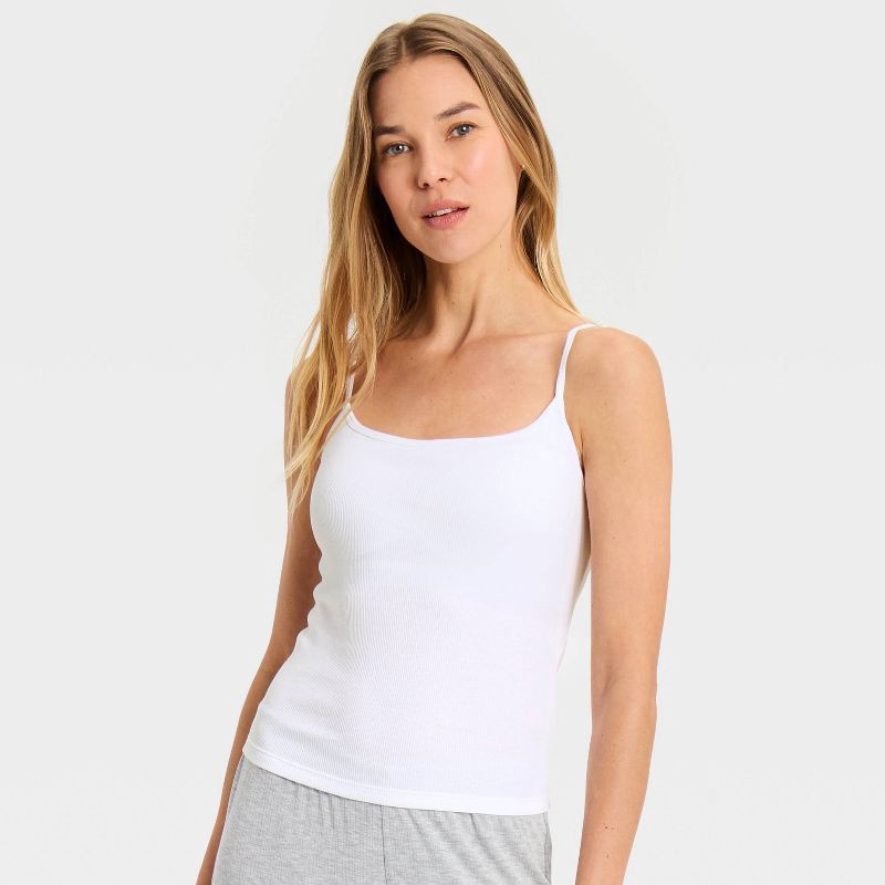 Women's Ribbed Built-in-Bra Sleep Camisole - Auden™ White L