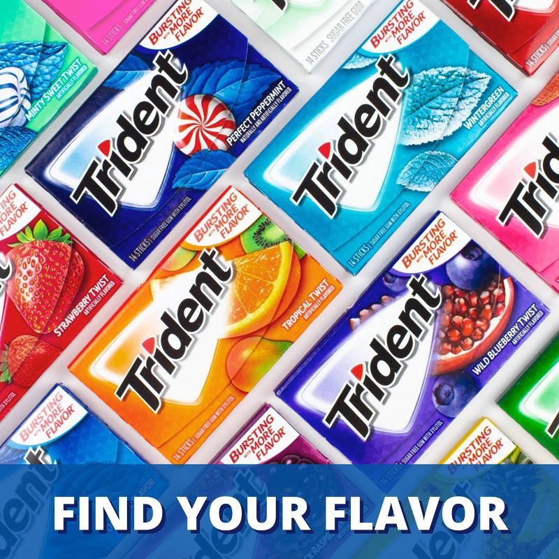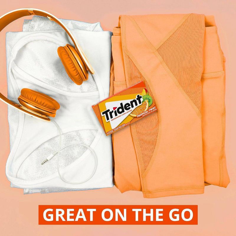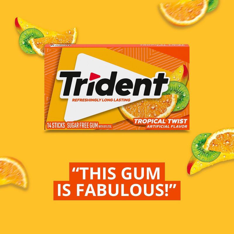 - Three packs with 14 pieces each, 42 total pieces, of Trident Tropical Twist Sugar Free Gum (packaging may vary)