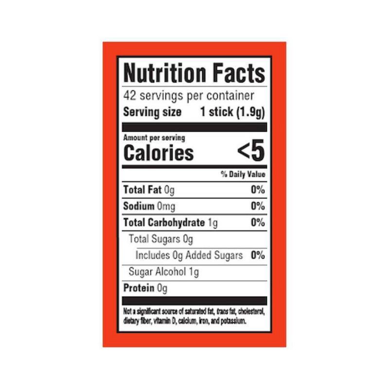 Sorbitol, Gum Base, Xylitol, Mannitol, Maltitol Syrup, Natural and Artificial Flavor; Less than 2% of: Acesulfame Potassium, Aspartame, BHT (to Maintain Freshness), Citric Acid, Glycerin, Malic Acid, …