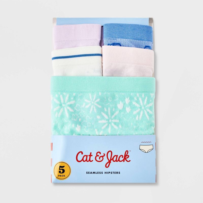 Add some soft colors to your little one's daily essentials with the Girls' 5pk Butterfly Seamless Hipster by Cat & Jack™. Made with a blend of nylon, spandex, and recycled polyester, these hipsters ar…