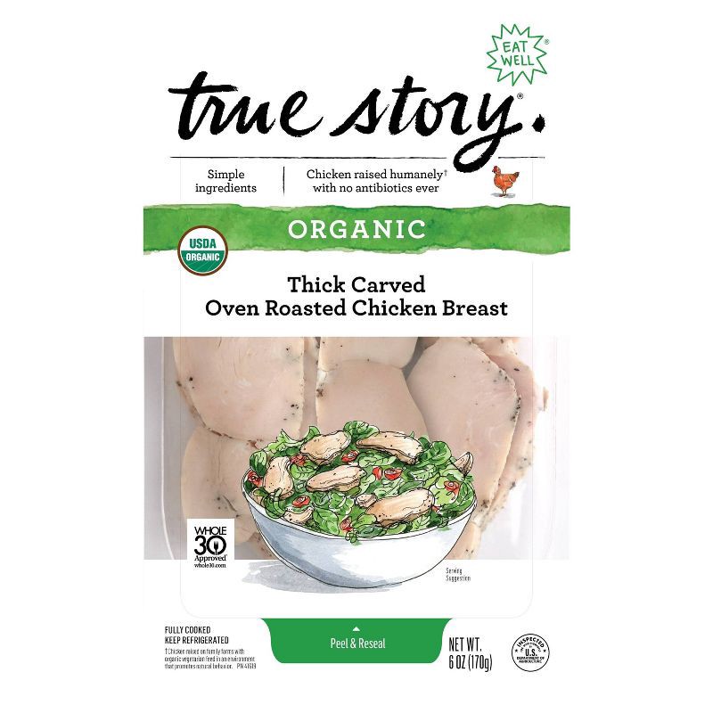 True Story Organic Thick Cut Oven Roasted Chicken Breast - 6oz