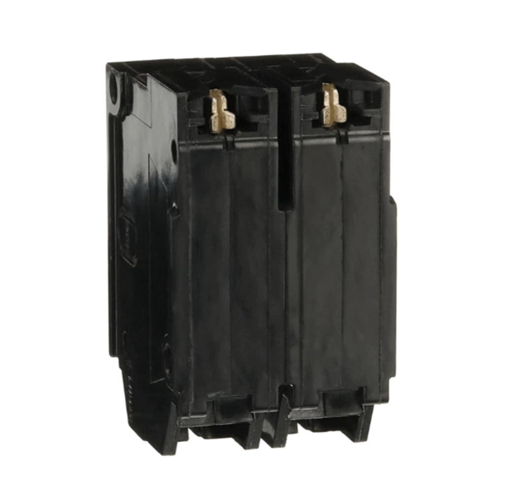 Compatible with ABB ReliaHome & GE PowerMark Load Centers. Double pole breaker for two 1" spaces. Easy-to-read trip indication via 3-handle positions: on, tripped (center position) and off. Calibratio…