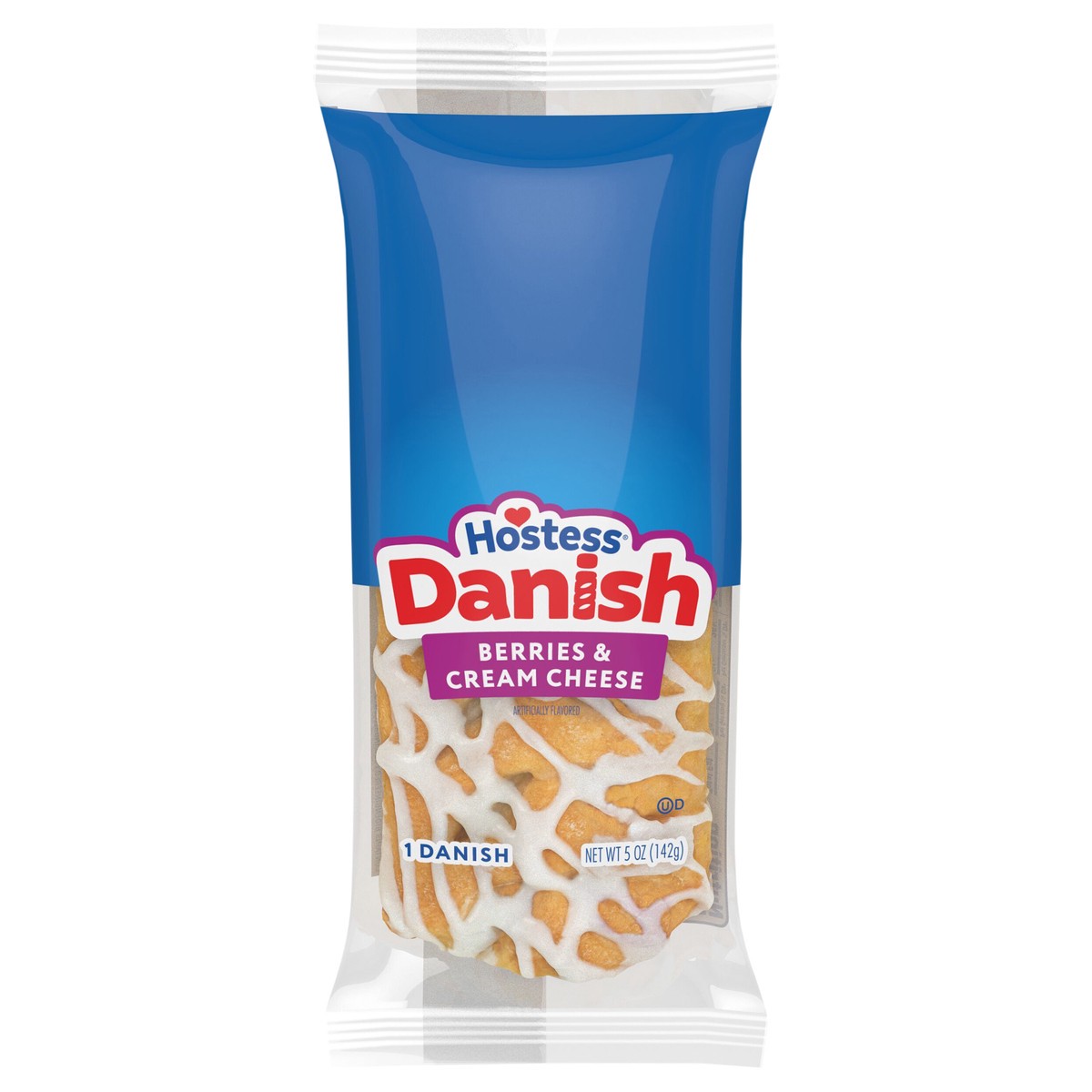 HOSTESS Berry Cream Cheese Danish are a delicious way to start your day! A buttery, flaky, puff pastry generously filled with a berry flavored cream cheese filling. Topped with a sweet drizzle of icin…