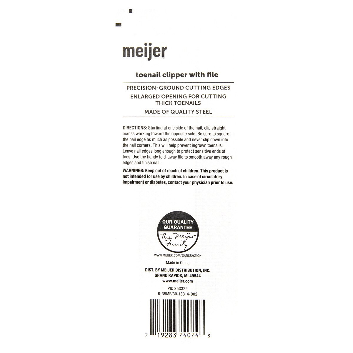 Meijer Straight Edge Toenail Clipper With File, 1 Ct