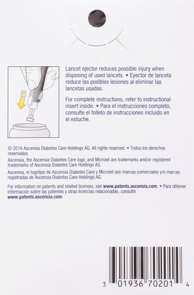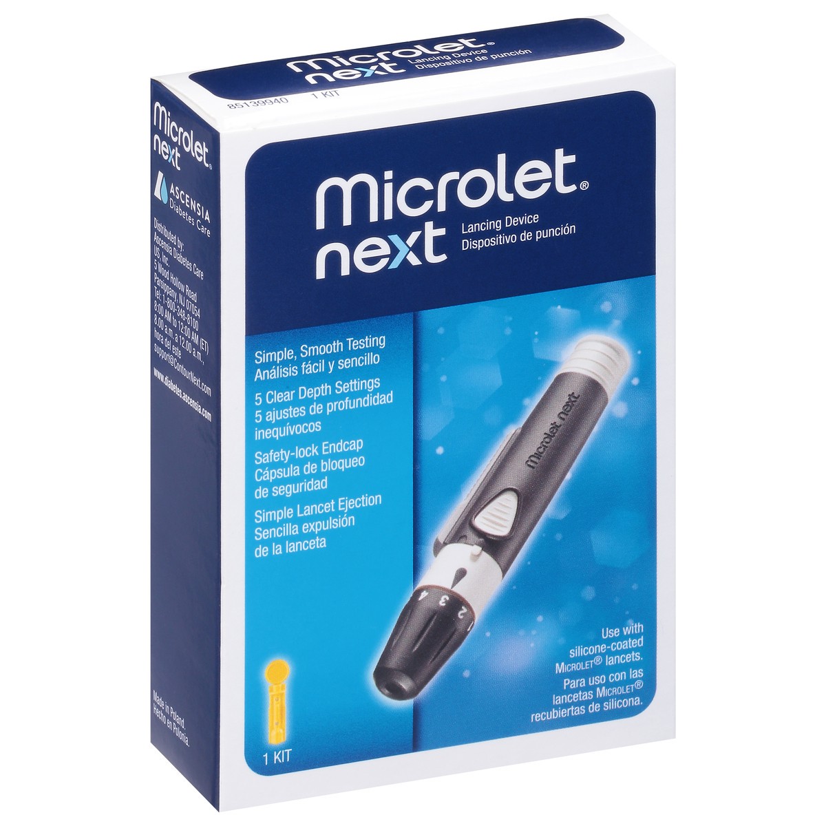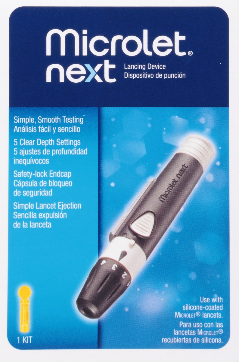 Simple, smooth testing. 5 clear dept setting. Safety-lock endcap. Simple lancet ejection. Use with silicone-coated Microlet lancets. Lancet ejector reduces possible injury when disposing of used lance…