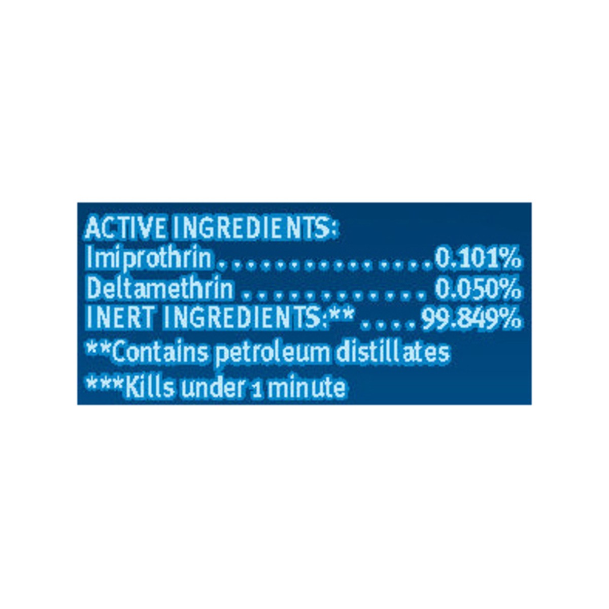 Imiprothrin (0.101%), Deltamethrin (0.050%), Other Ingredients (99.849%) For Indoor Residential Use Only.