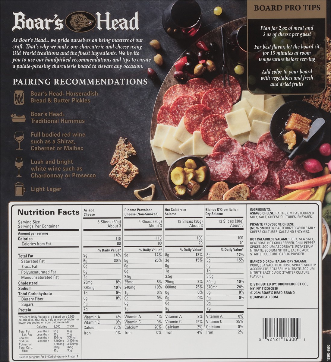 Asiago Cheese: Park-Skim Pasteurized Milk, Salt, Cheese Cultures, Enzymes. Picante Provolone Cheese (Non-Smoked): Pasteurized Whole Milk, Cheese Cultures, Salt and Enzymes. Hot Calabrese Salame: Pork,…