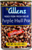 Packed from fresh shelled. Heat 'n serve. Serving up memories since 1926. Heart-Healthy: Cholesterol free; High in fiber. Allens purple Hull Peas are an excellent source of dietary fiber and are natur…
