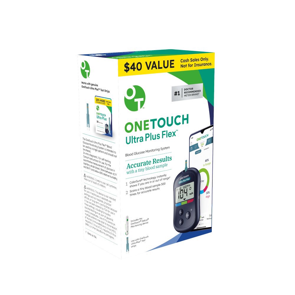 Fast, Accurate Readings: Get reliable blood sugar readings with a small blood sample in just 5 seconds using this diabetes testing kitSmall Blood Samples: Use the OneTouch Ultra Plus Flex glucose moni…