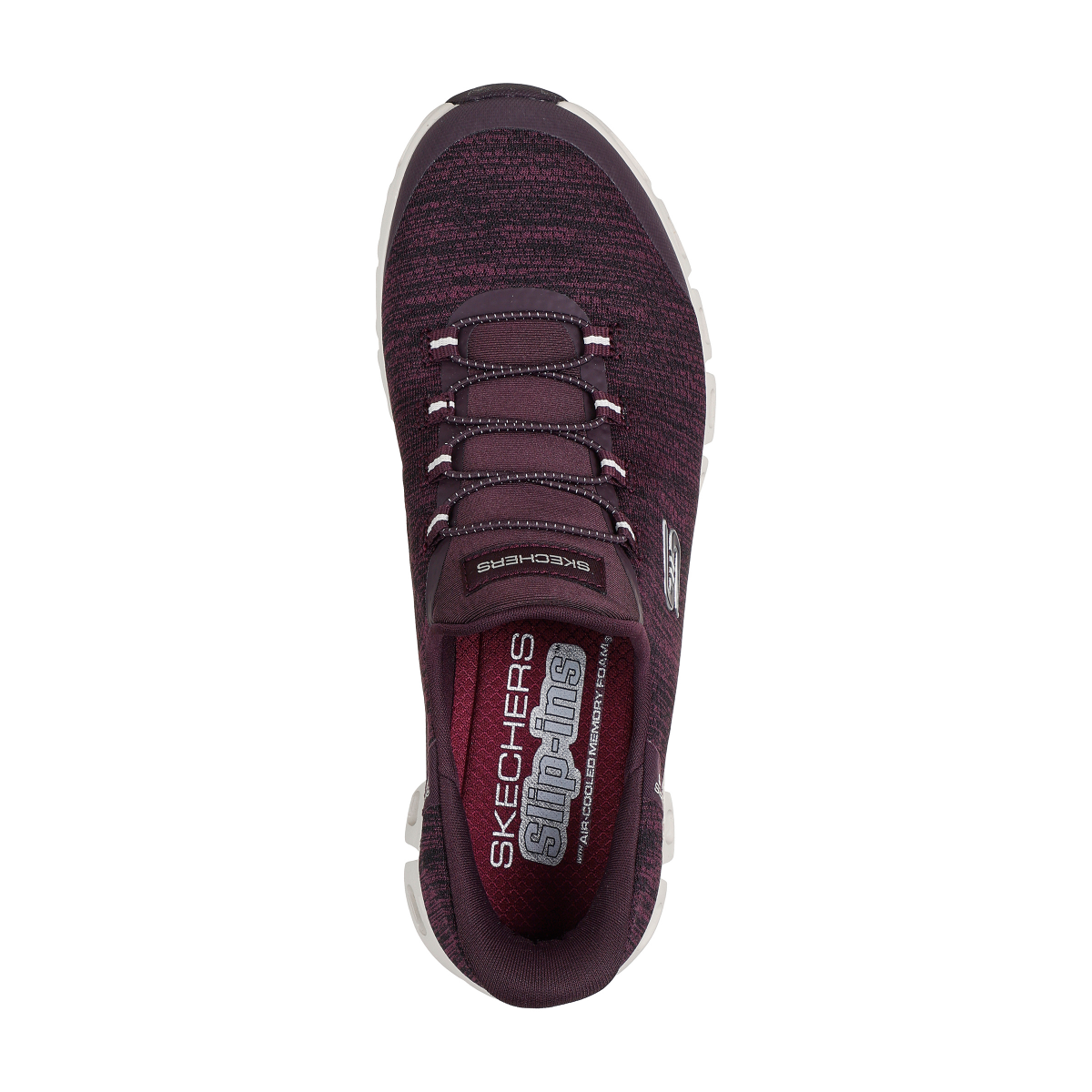 Skechers Hands Free Slip-ins, Air-Cooled Memory Foam Cushioned Comfort Insole, Glide-Step Geometric Midsole, No Tie Fit, Vegan Materials, Heathered Jersey Upper with Stretch Laces, Flexible Traction Outsole, 1.5 inch Heel Height, Machine Washable