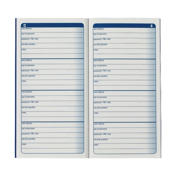 Use the Adams Password Journal to record user names, logins, passwords, pin hints, security questions and notes for all of your websites in one convenient location. Pages are organized alphabetically …