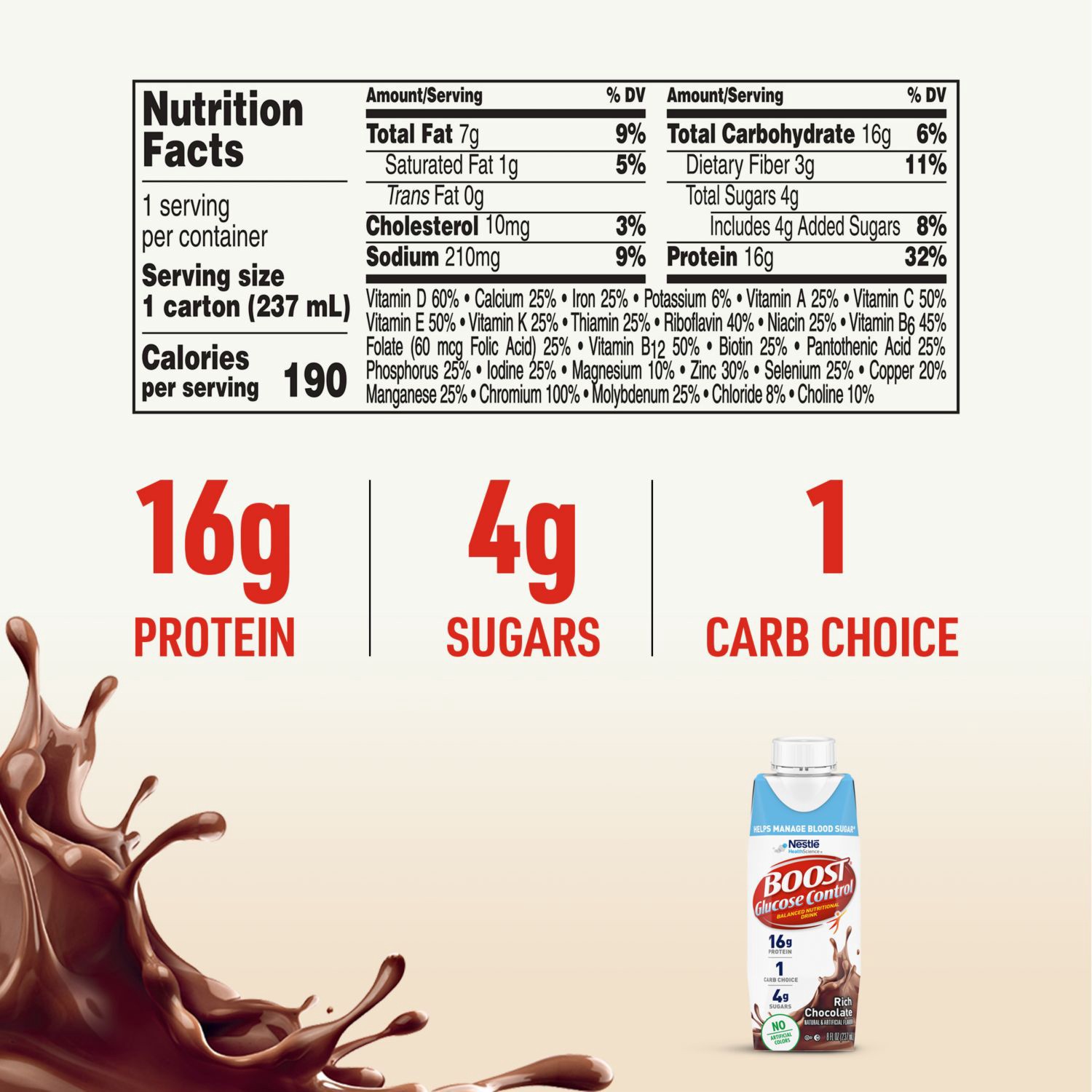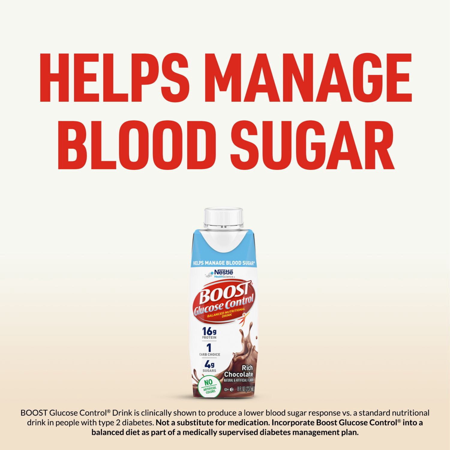 BOOST Glucose Control Rich Chocolate Flavored Nutritional Drink is a balanced nutritional drink specially formulated to help people with diabetes manage blood sugar as part of a balanced diet.†. It co…
