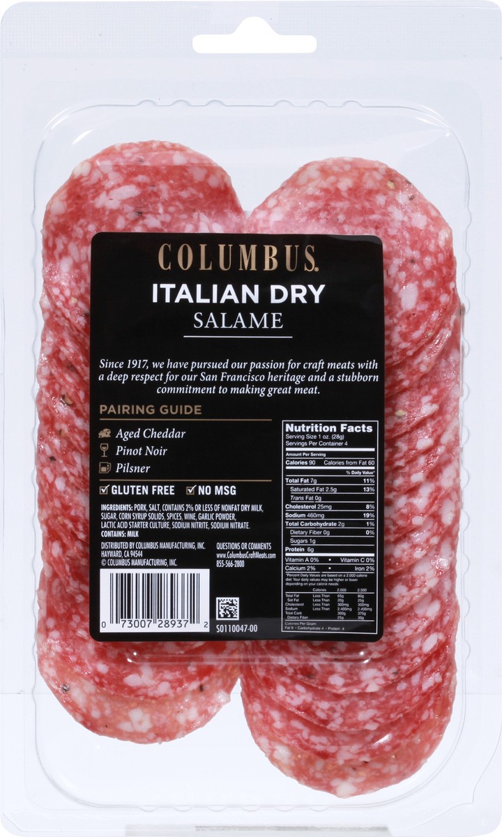 Pork, Salt, Contains 2% or Less of Nonfat Dry Milk, Sugar, Corn Syrup Solids, Spices, Wine, Garlic Powder, Lactic Acid Starter Culture, Sodium Nitrite, Sodium Nitrate.